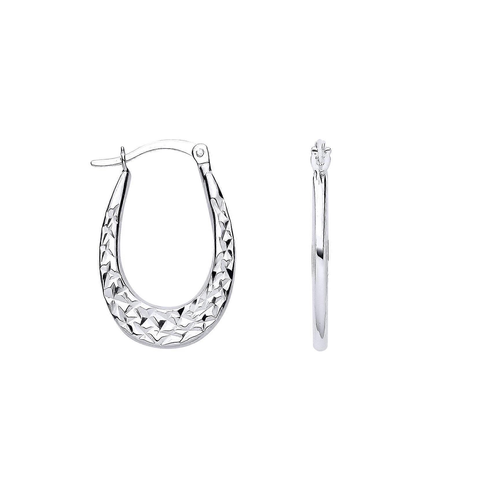 Jewelco London Ladies Rhodium Sterling Silver Hammered Oval Handbag Creole Earrings