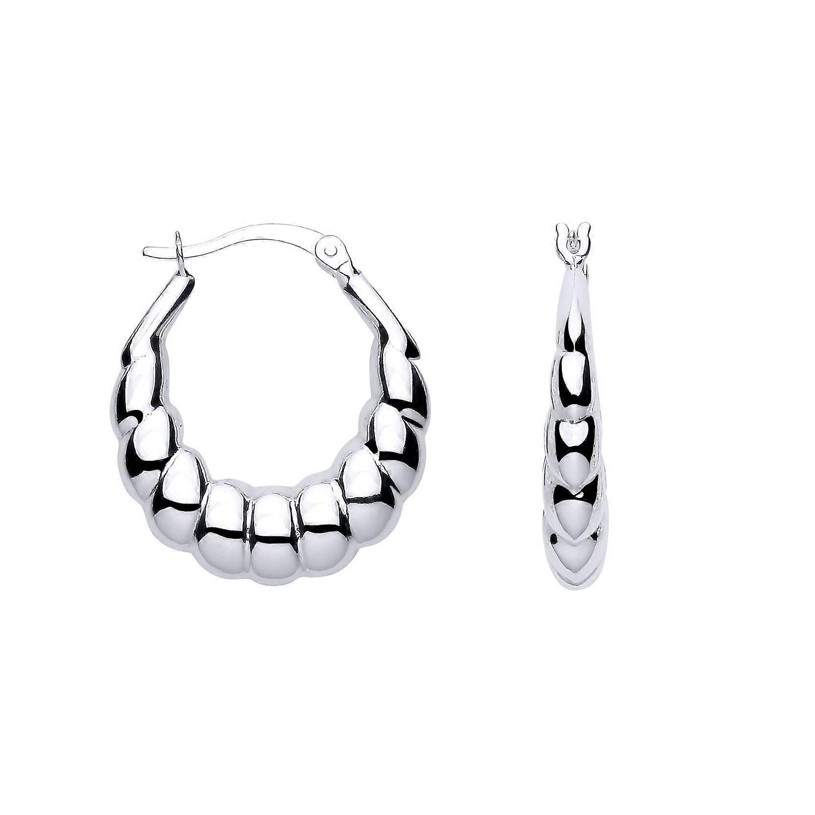 Jewelco London Ladies Rhodium Sterling Silver Polished Round Twisted Croissant Creole Earrings