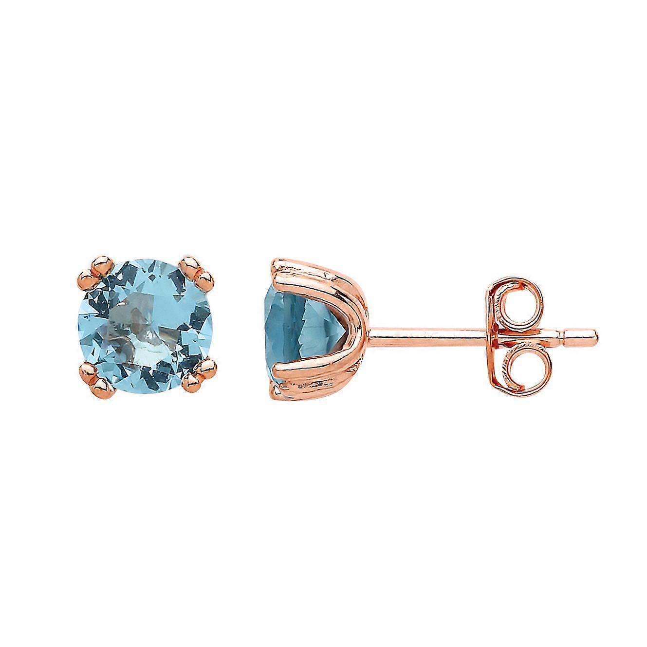 Jewelco London Ladies Rose Gold-Plated Sterling Silver aqua Cubic zirconia Double 4 Claw Solitaire Stud Earrings 6mm