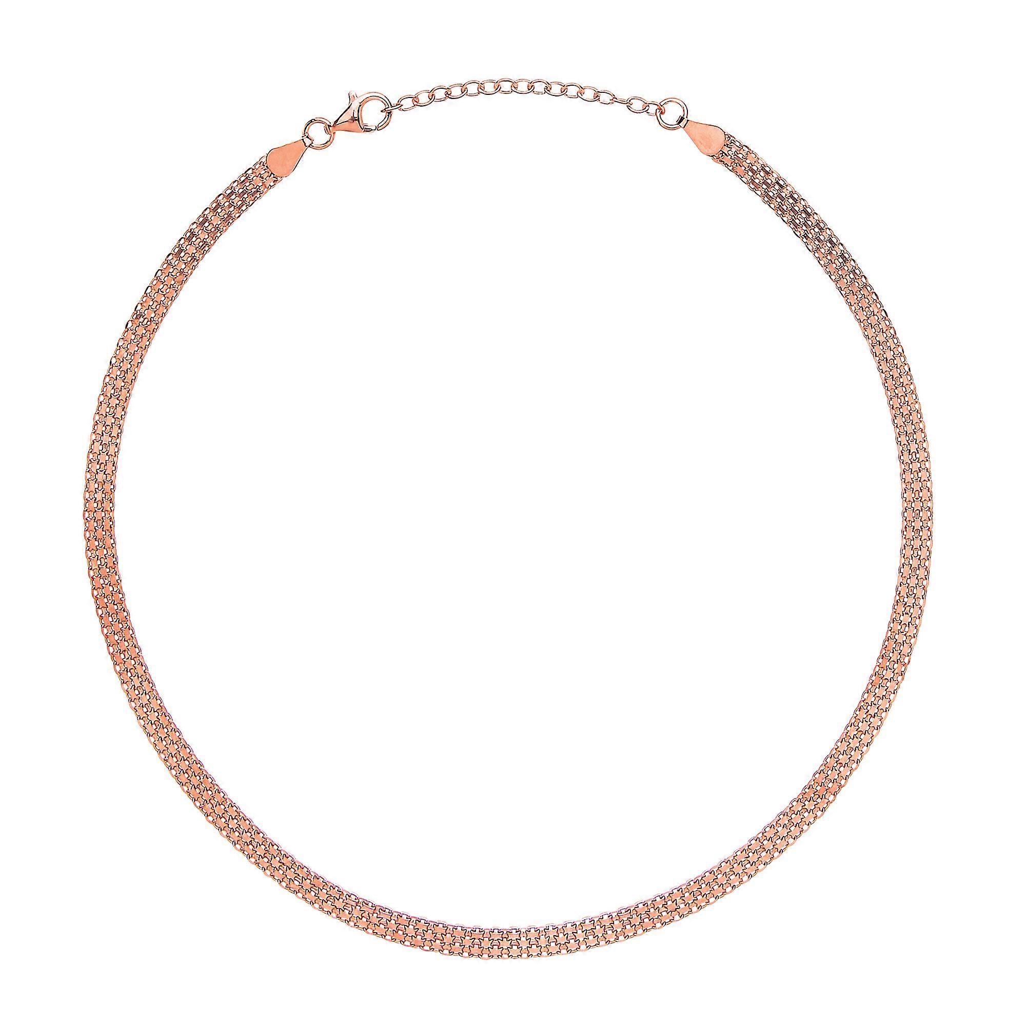 Jewelco London Ladies Rose Gold-Plated Sterling Silver Bismark Flat Cage Choker Collarette Necklace 5mm 14-16"