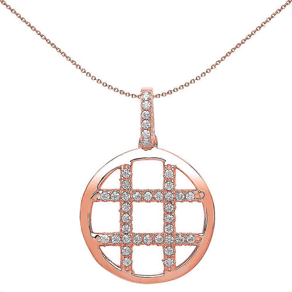 Jewelco London Ladies Rose Gold-Plated Sterling Silver Cubic zirconia Halo Pave Hashtag Charm Necklace 18 inch