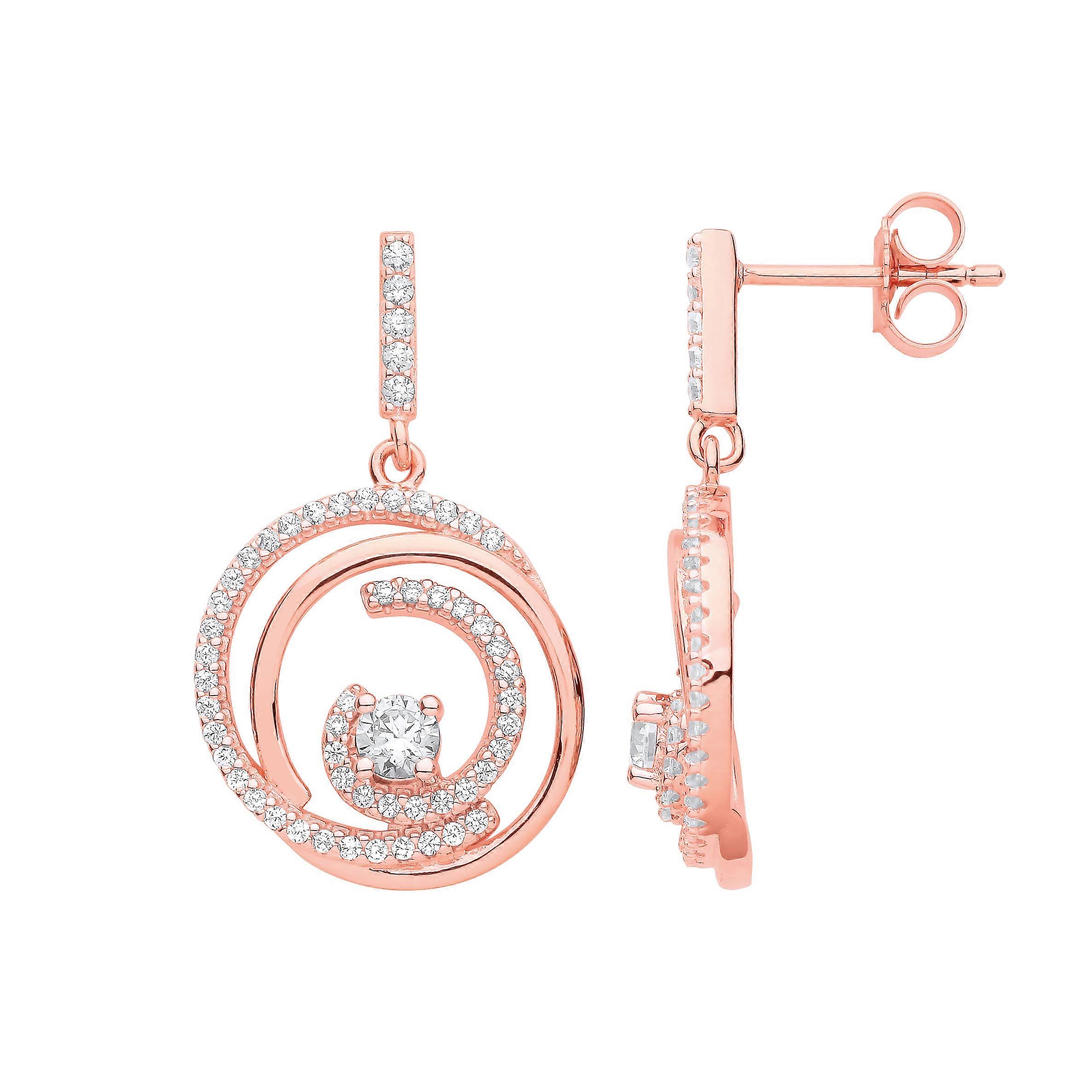 Jewelco London Ladies Rose Gold-Plated Sterling Silver CZ Tornado Spiral Solitaire Cluster Drop Earrings