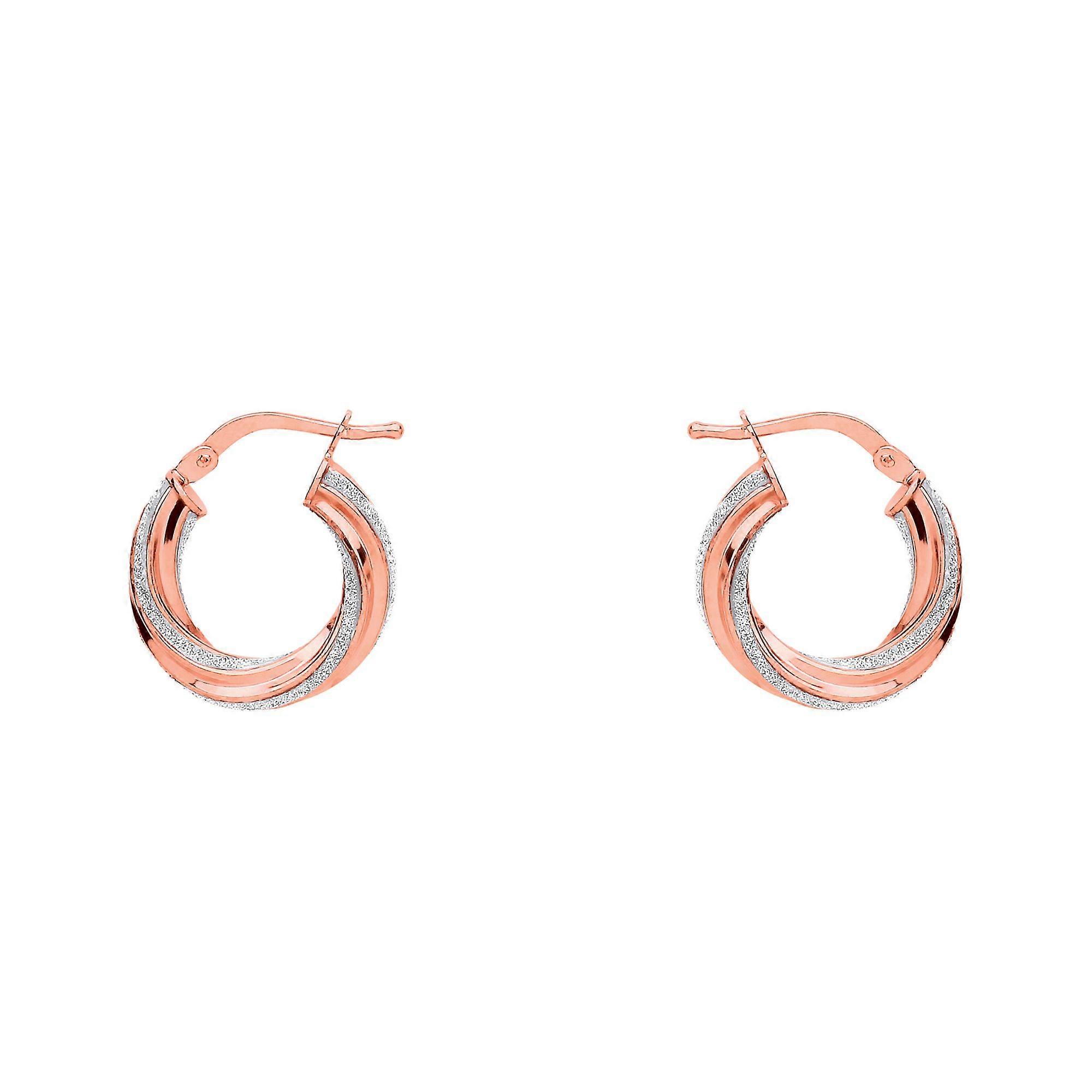 Jewelco London Ladies Rose Gold-Plated Sterling Silver Licorice Twist Moondust Hoop Earrings 17mm