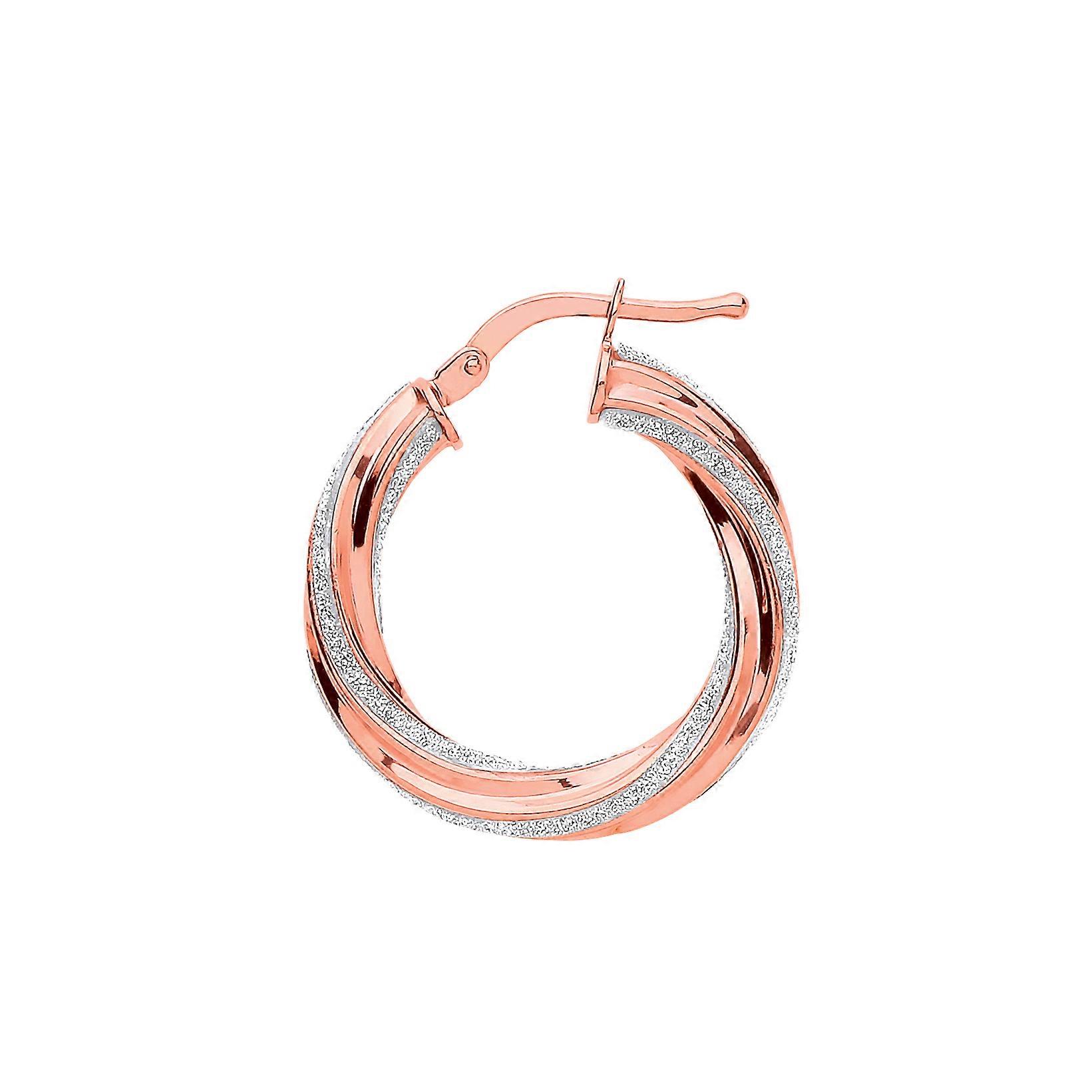 Jewelco London Ladies Rose Gold-Plated Sterling Silver Licorice Twist Moondust Hoop Earrings 22mm