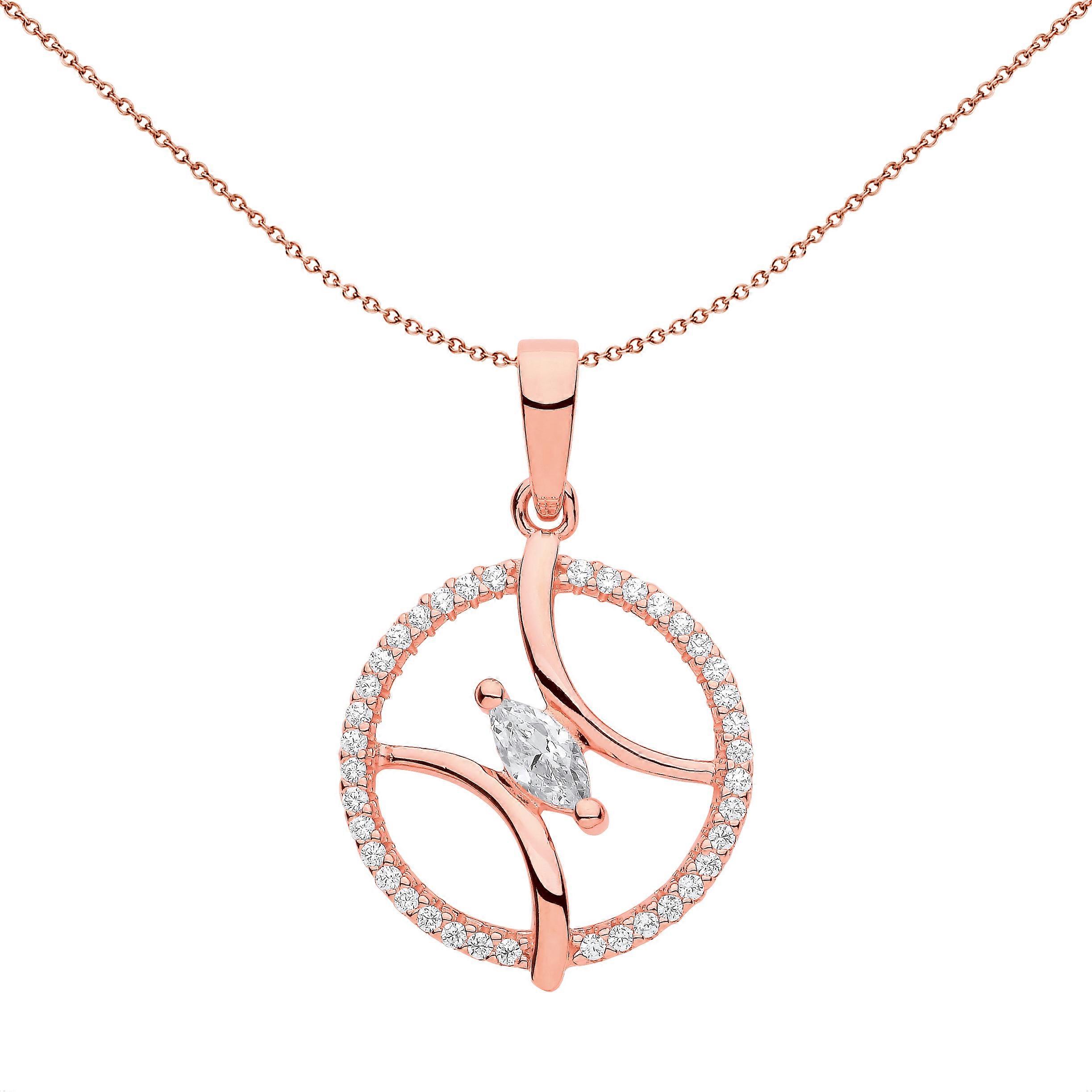 Jewelco London Ladies Rose Gold-Plated Sterling Silver Marquise CZ Baseball Tennis Ball Circle of Life Necklace 18 inch