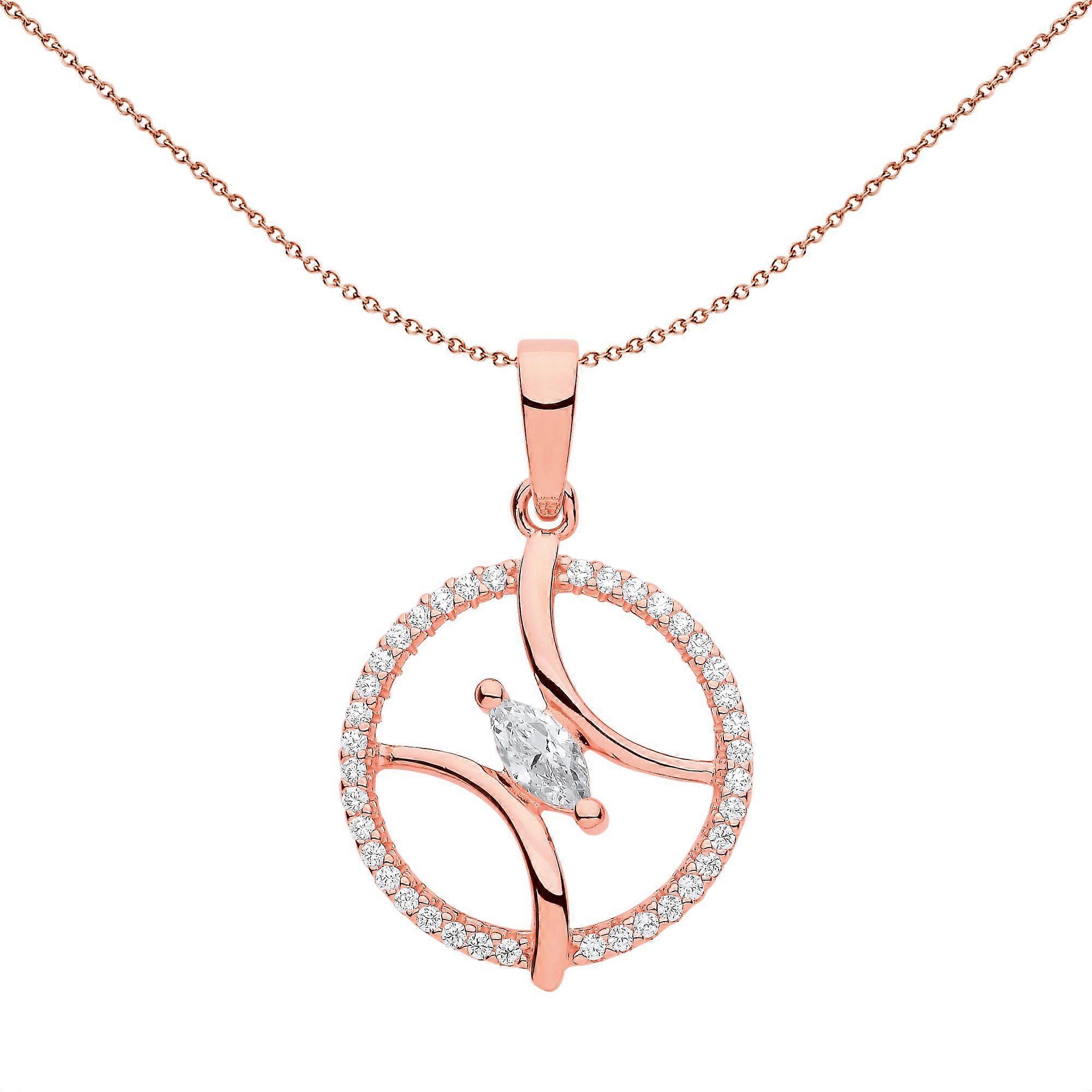 Jewelco London Ladies Rose Gold-Plated Sterling Silver Marquise CZ Baseball Tennis Ball Circle of Life Necklace 18 inch