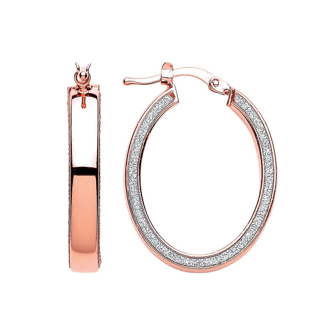 Jewelco London Ladies Rose Gold-Plated Sterling Silver Moondust Hoop Earrings 19x25mm