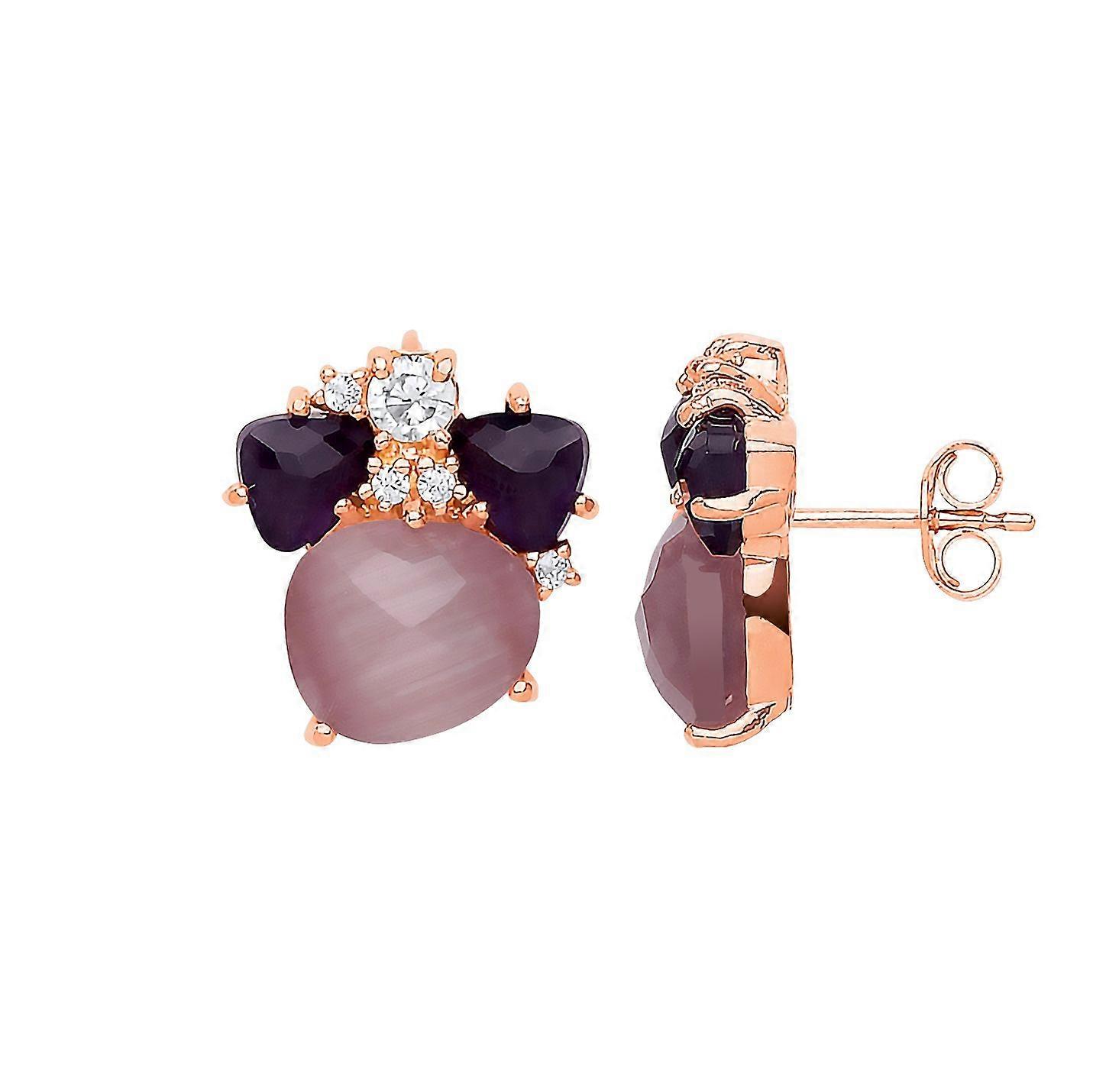 Jewelco London Ladies Rose Gold-Plated Sterling Silver pink Oval Quartz Pebble Stud Earrings