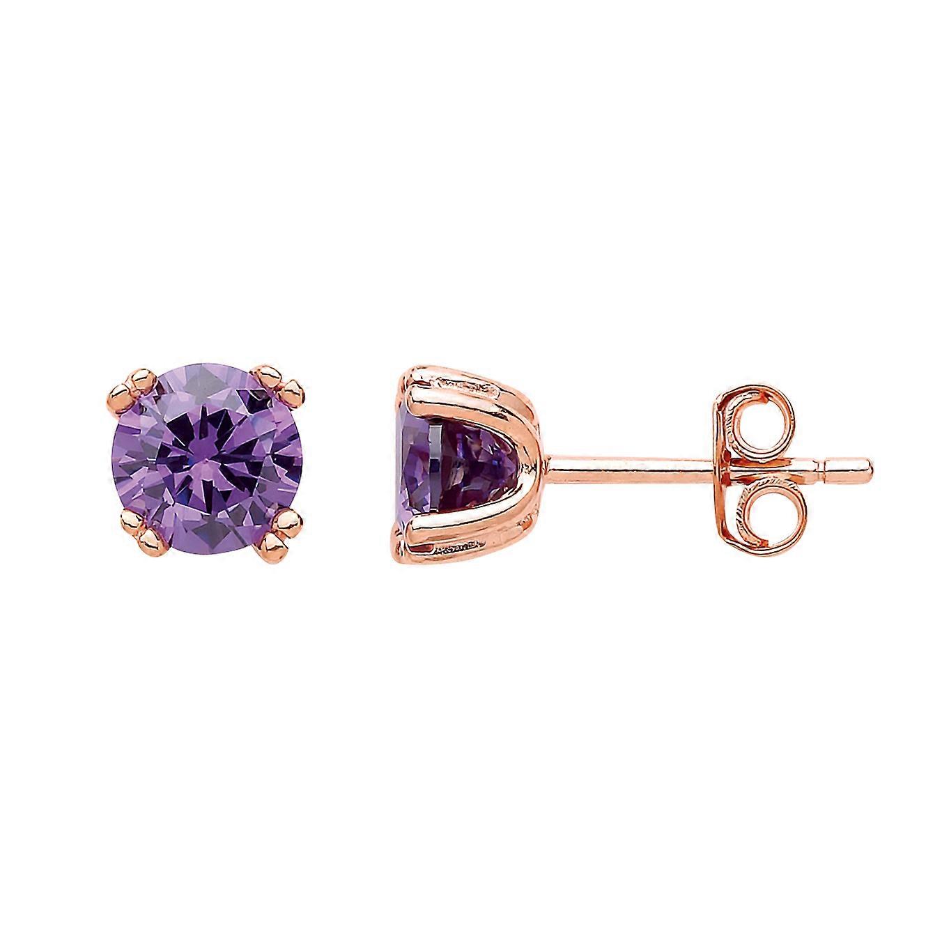 Jewelco London Ladies Rose Gold-Plated Sterling Silver Purple Cubic zirconia Double 4 Claw Solitaire Stud Earrings 6mm