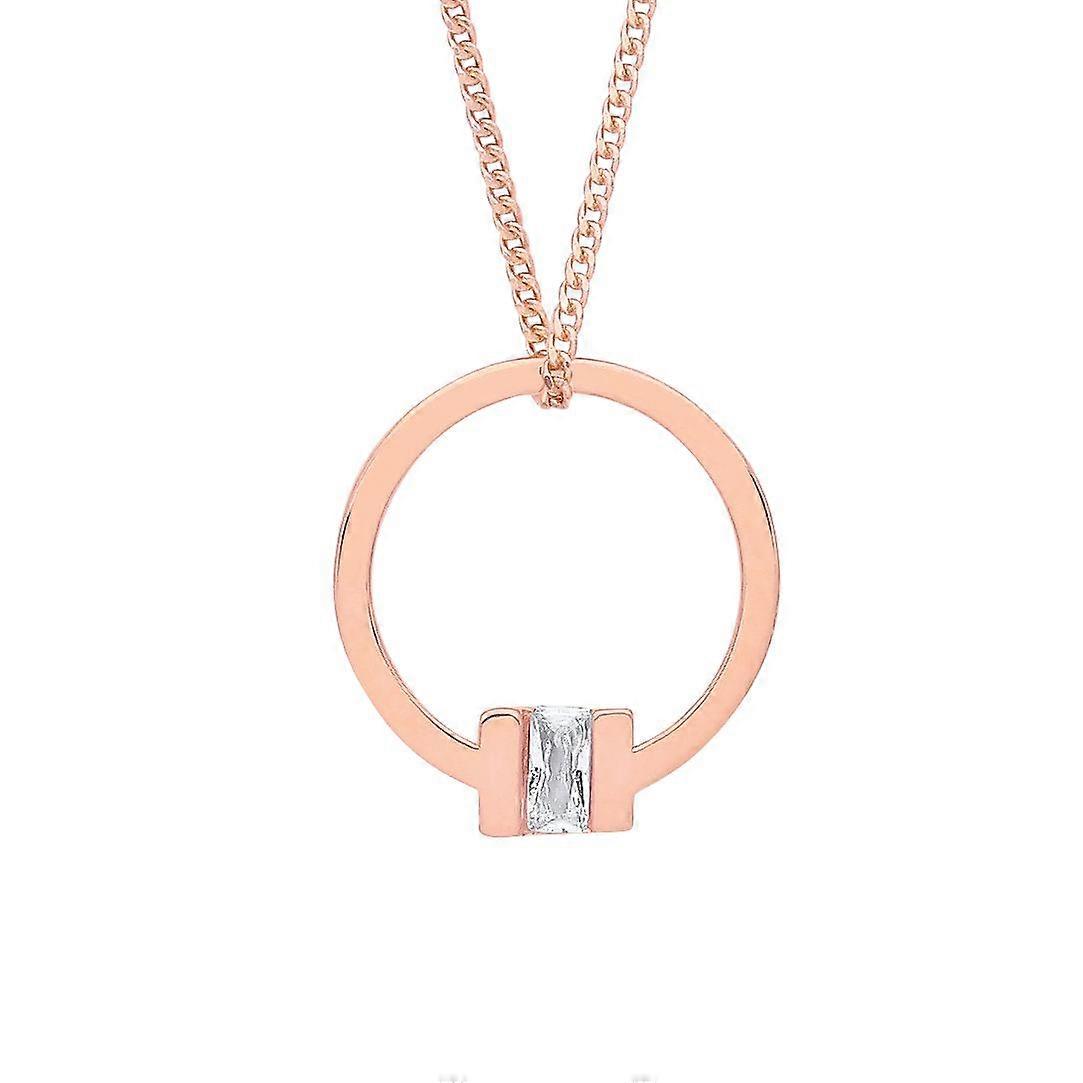 Jewelco London Ladies Rose Gold-Plated Sterling Silver Radiant CZ Circular Square T Bar Lavalier Necklace 17 + 1 inch