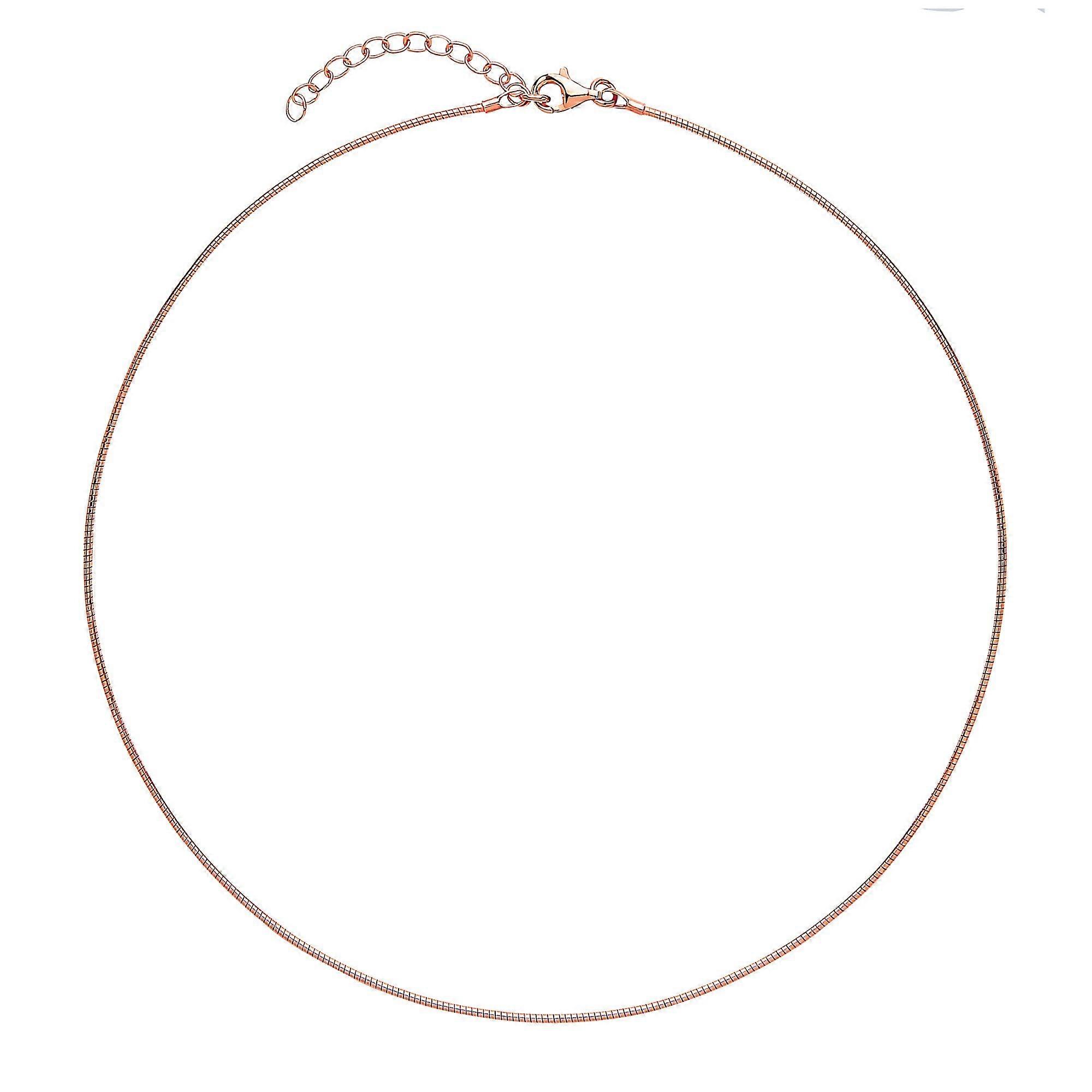 Jewelco London Ladies Rose Gold-Plated Sterling Silver Snake Omega Chain Choker Collarette Necklace 1.3mm 14-16"