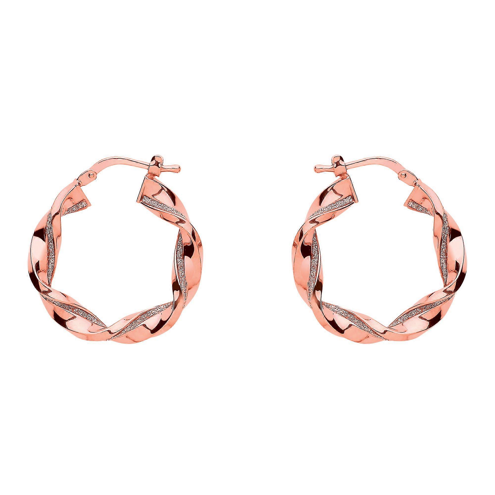 Jewelco London Ladies Rose Gold-Plated Sterling Silver Square Tube Twist Moondust Hoop Earrings 25mm