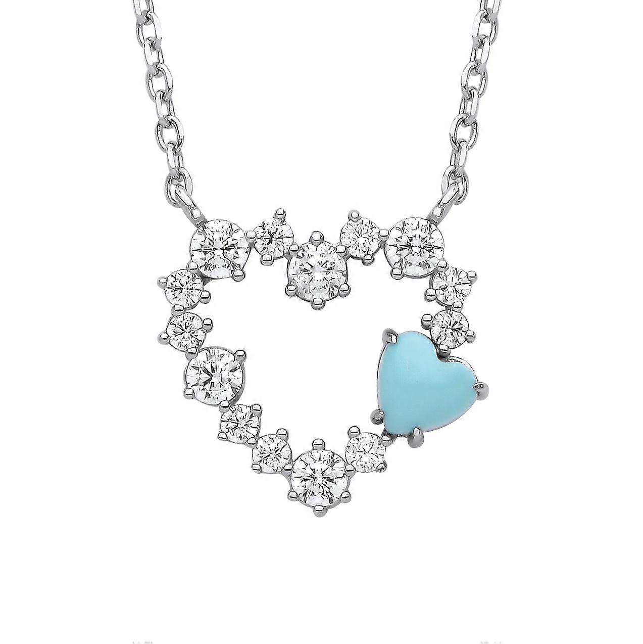 Jewelco London Ladies Silver Blue Heart Turquoise CZ Lil n Large Embedded Love Heart Lavalier Necklace 14 + 2 inch