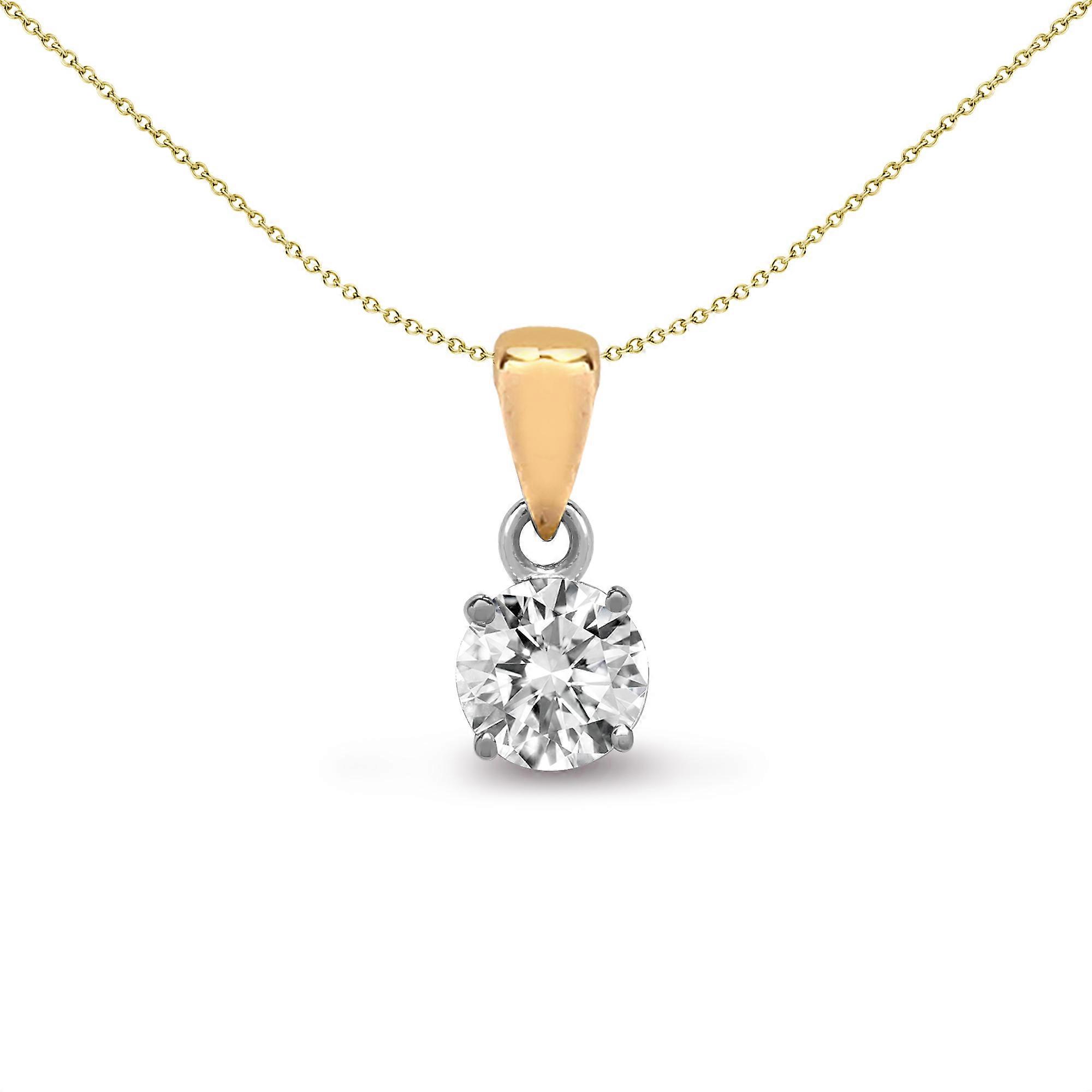 Jewelco London Ladies Solid 18ct 2 Colour Gold 4 Claw Set Round G SI1 0.15ct Diamond Solitaire Charm Pendant