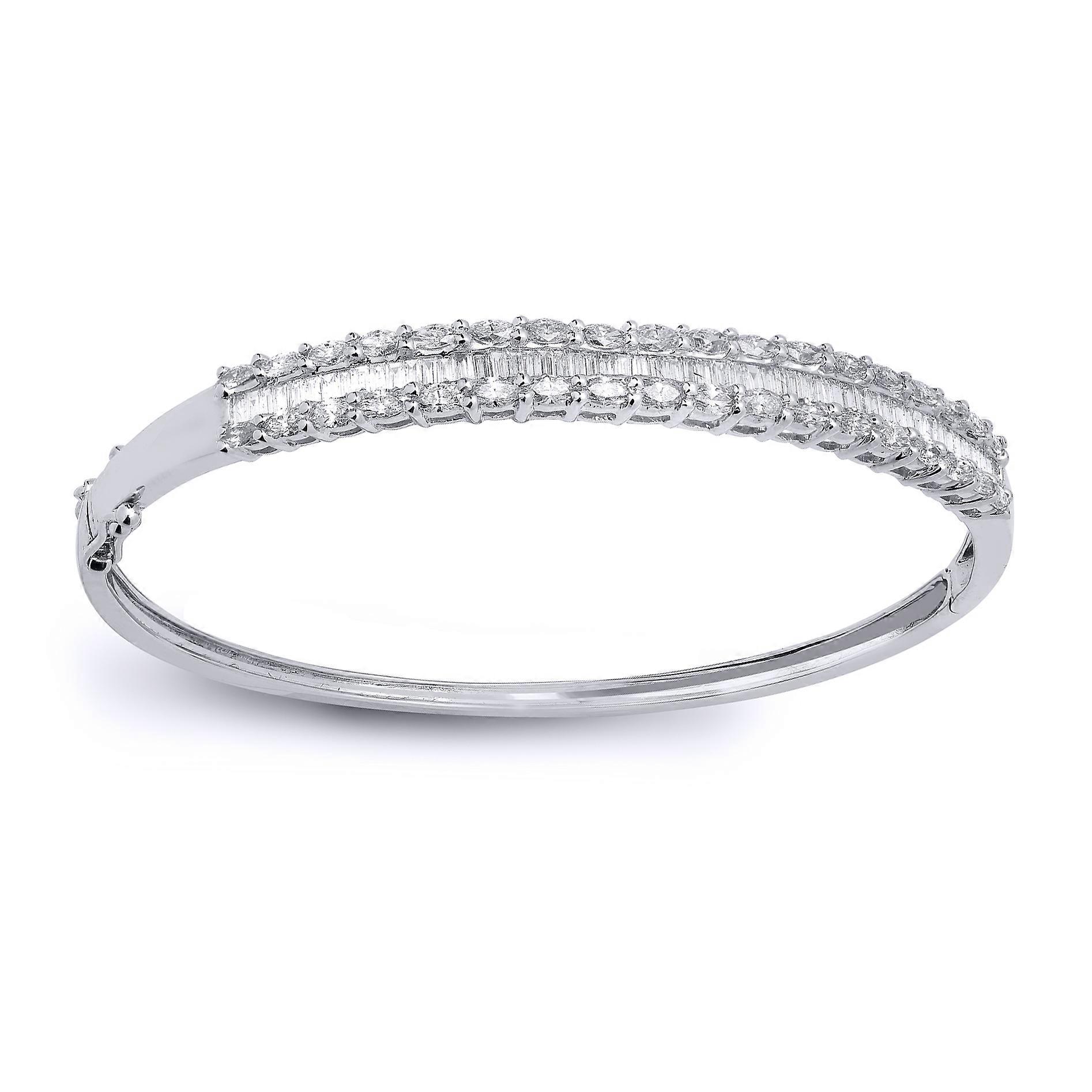 Jewelco London Ladies Solid 18ct White Gold 4 Claw Set Baguette G VS 2.25ct Diamond Eternity Bangle Bracelet 6mm
