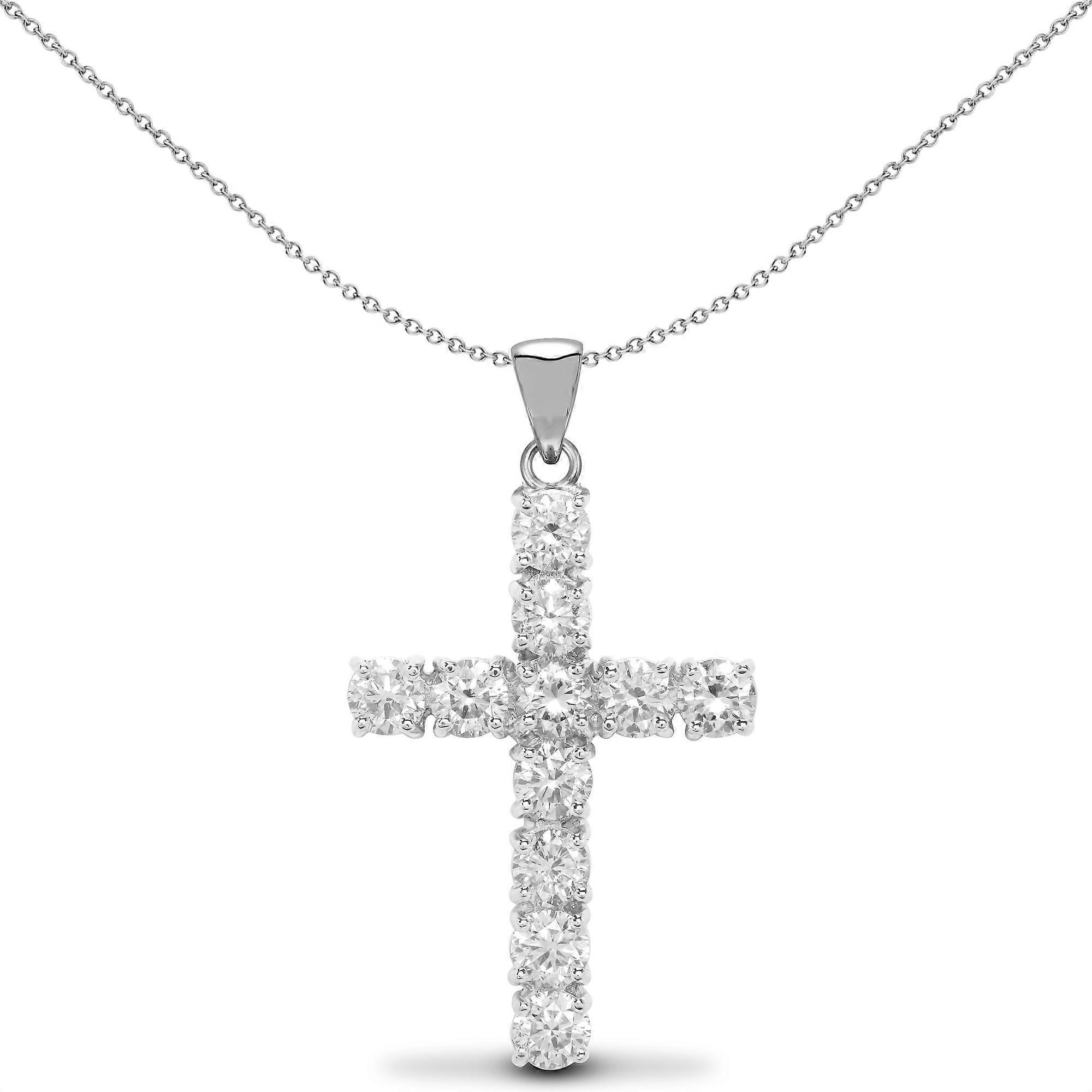 Jewelco London Ladies Solid 18ct White Gold 4 Claw Set Round G SI1 2ct Diamond Eternity Cross Pendant