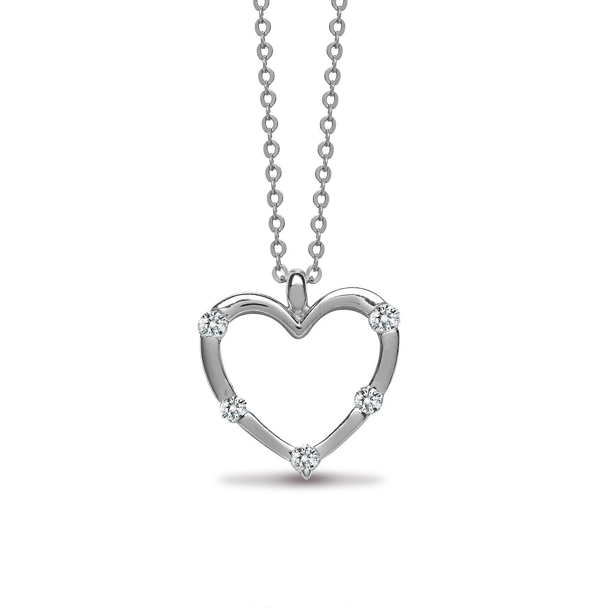 Jewelco London Ladies Solid 18ct White Gold Channel Set Round G SI1 0.15ct Diamond Love Heart Charm Necklace