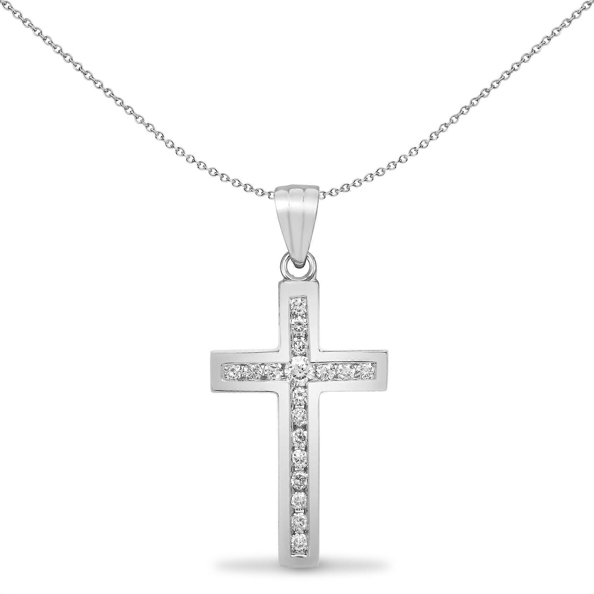 Jewelco London Ladies Solid 18ct White Gold Channel Set Round G SI1 0.18ct Diamond Flat Cross Pendant