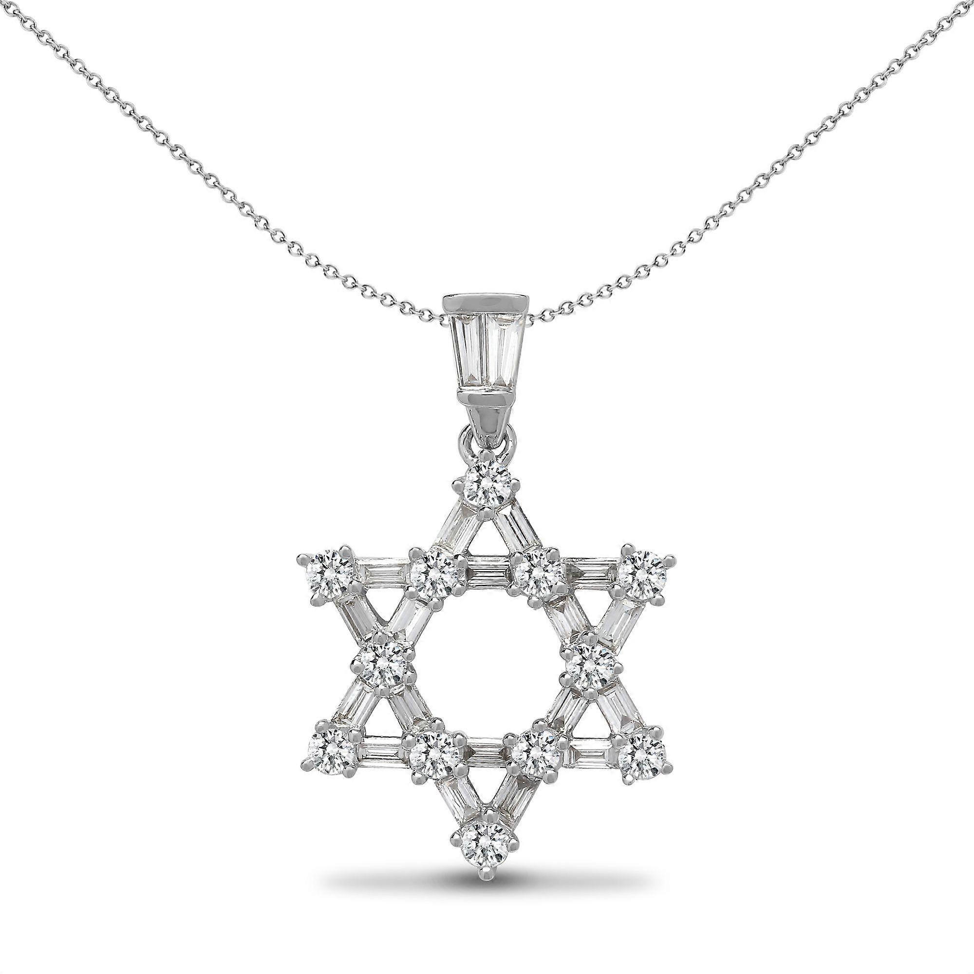 Jewelco London Ladies Solid 18ct White Gold Cluster Set Baguette G SI1 1ct Diamond Magen David Star Charm Pendant