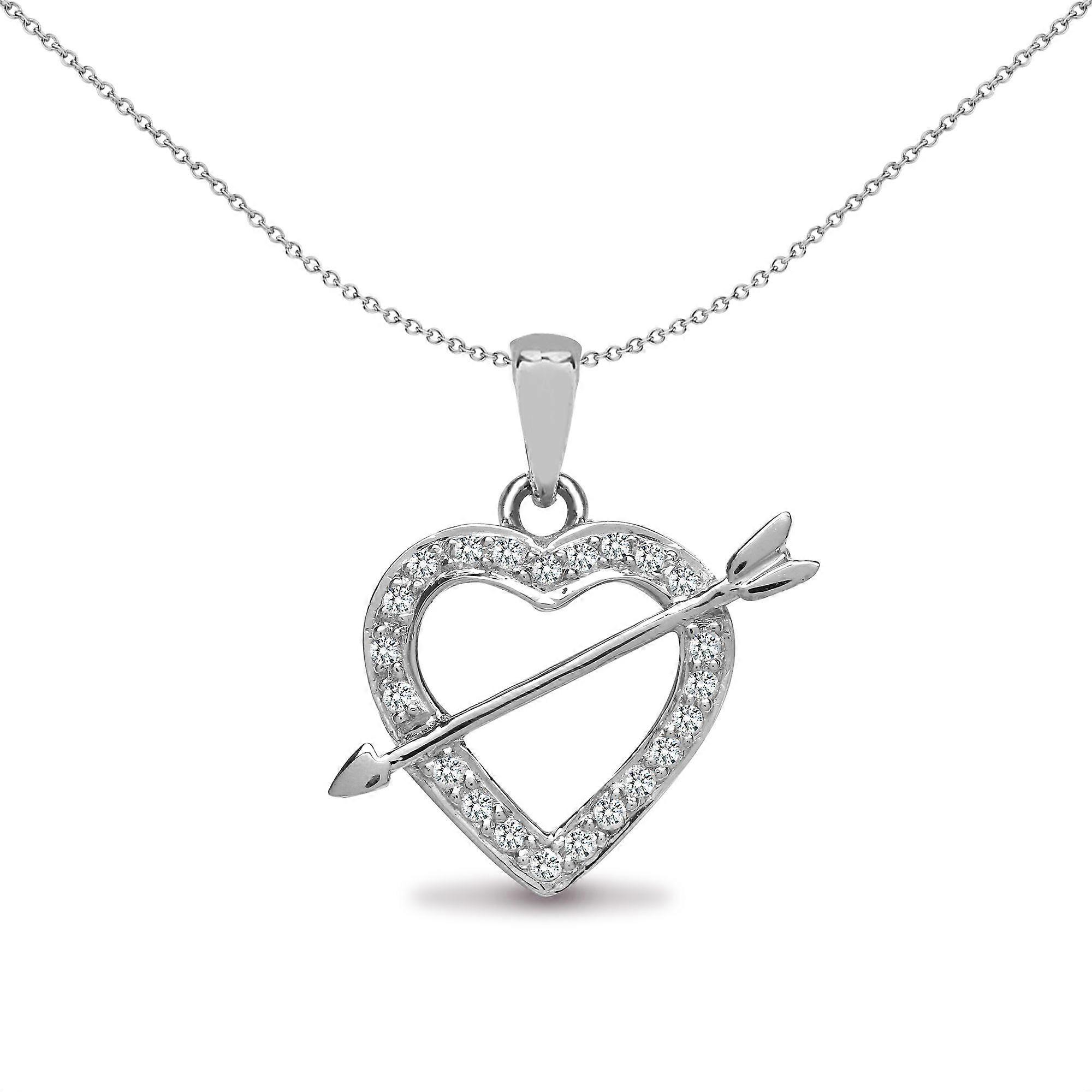 Jewelco London Ladies Solid 18ct White Gold Pave Set Round G SI1 0.15ct Diamond Love Heart Arrow Charm Pendant