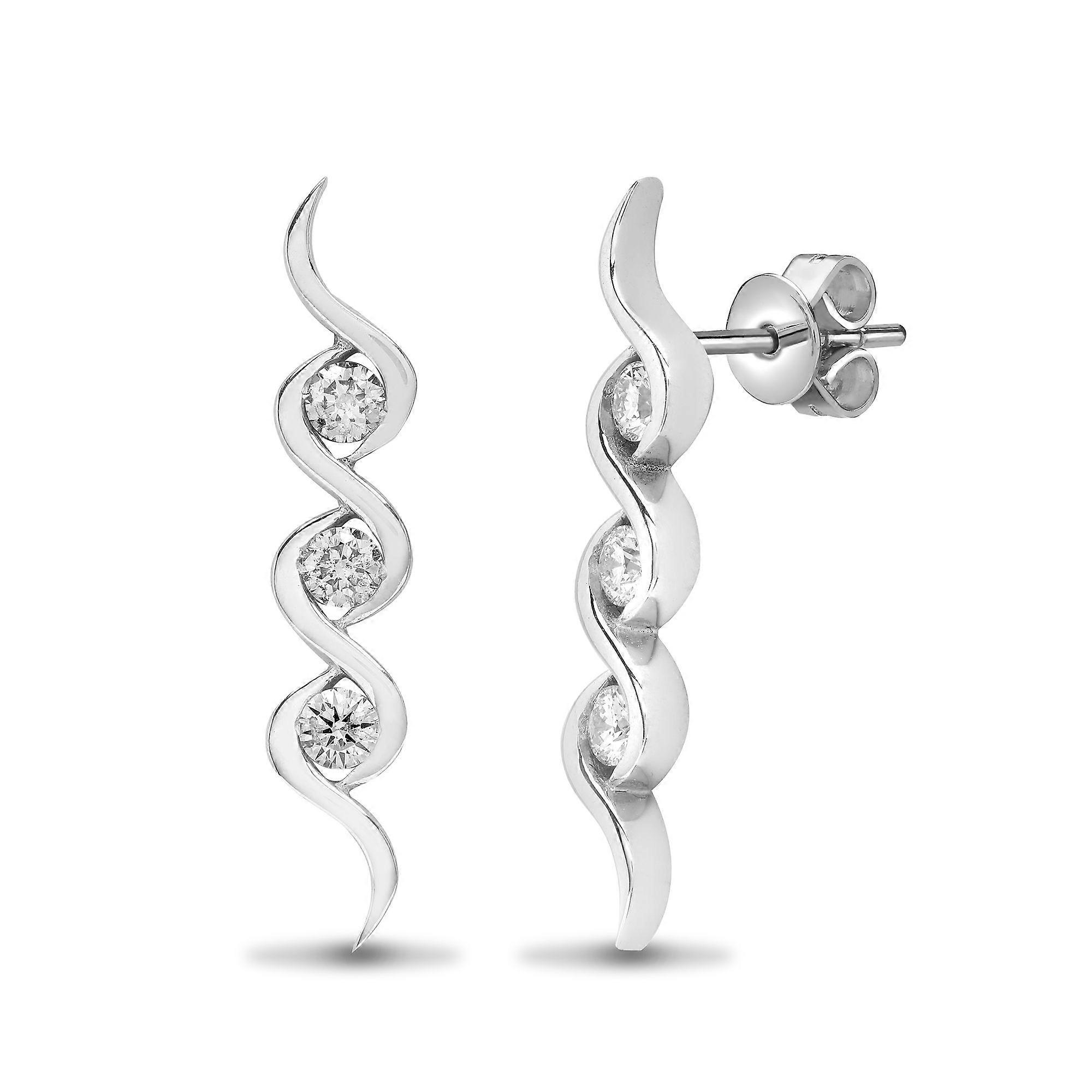 Jewelco London Ladies Solid 18ct White Gold Rub Over Set Round G SI1 0.49ct Diamond Trilogy Twist Drop Earrings