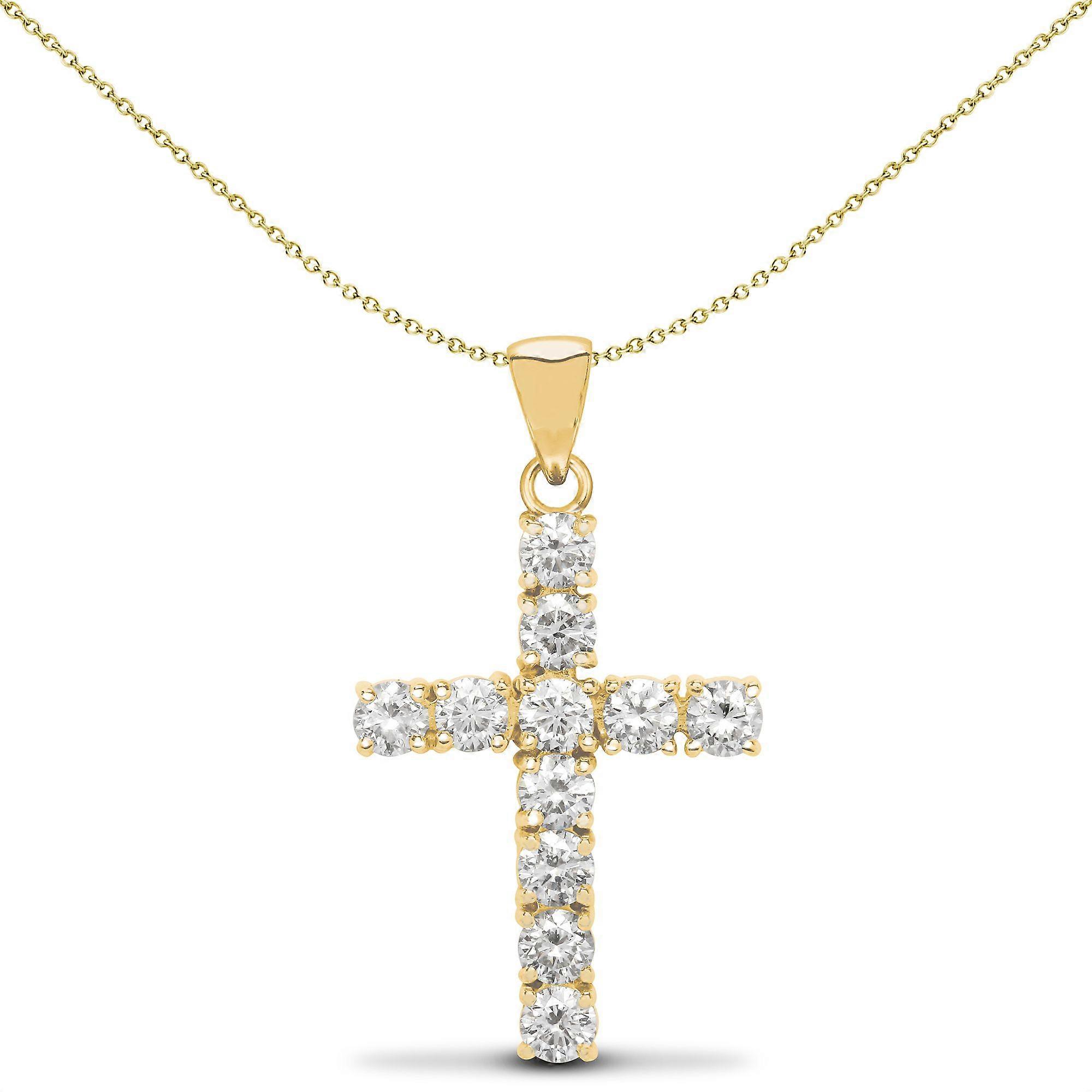 Jewelco London Ladies Solid 18ct Yellow Gold 4 Claw Set Round G SI1 1ct Diamond Eternity Cross Pendant