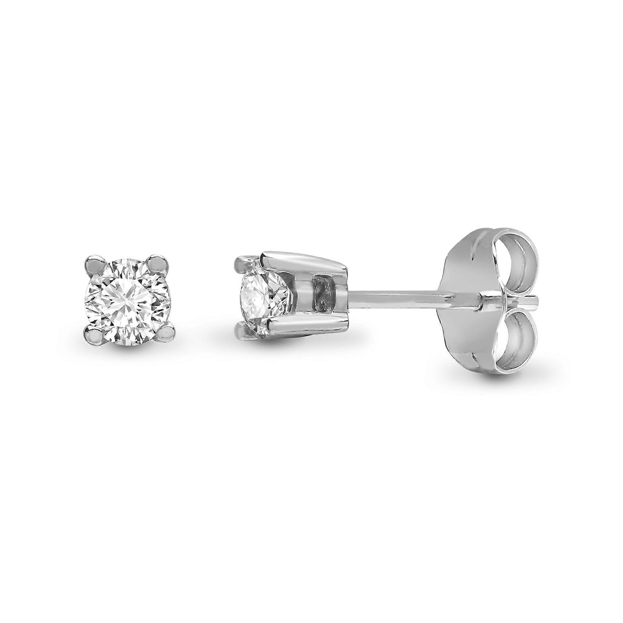 Jewelco London Ladies Solid 9ct White Gold 4 Claw Set Round H I1 0.3ct Diamond Solitaire Stud Earrings