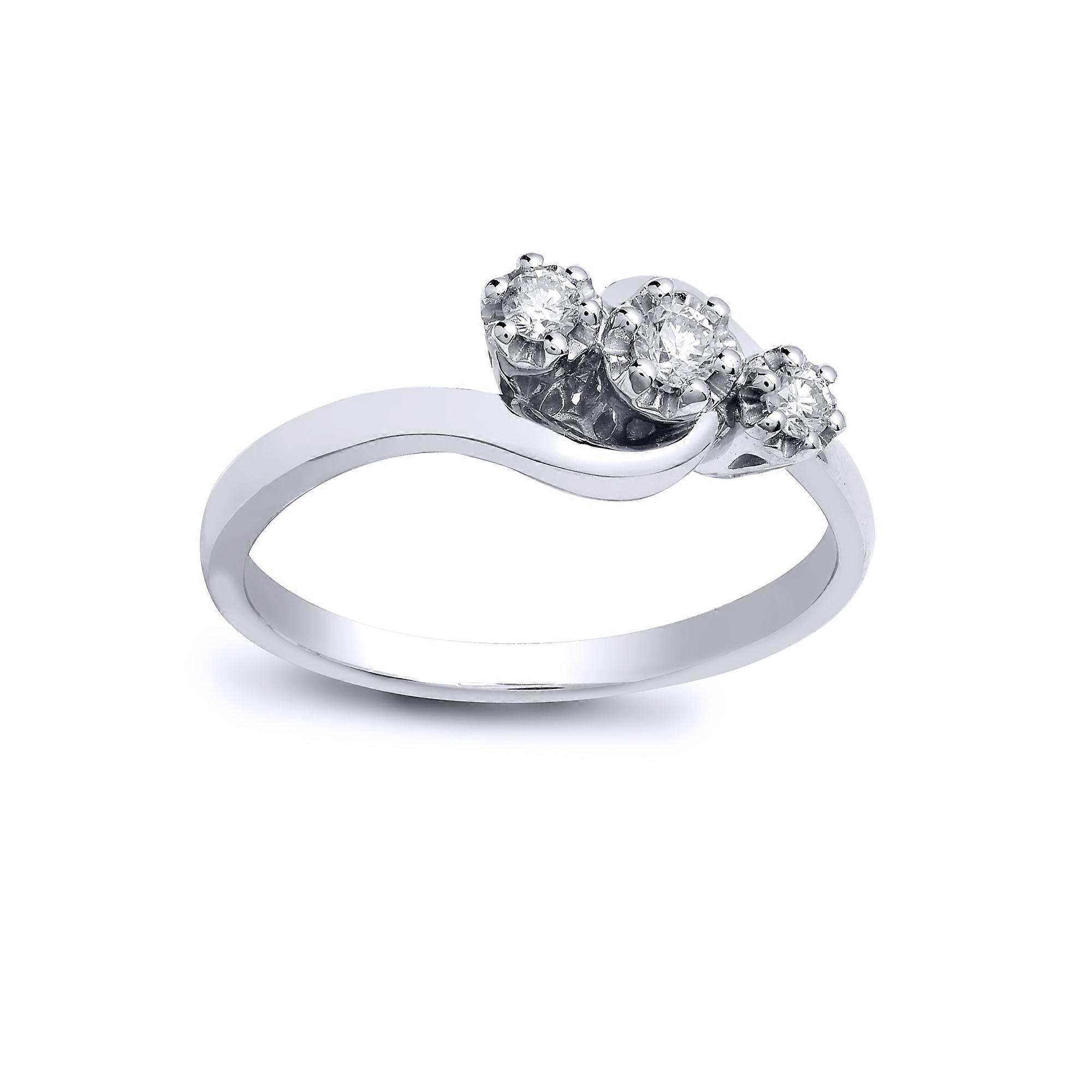 Jewelco London Ladies Solid 9ct White Gold 6 Claw Set Round H I2 0.25ct Diamond Crossover Trilogy Ring 6mm