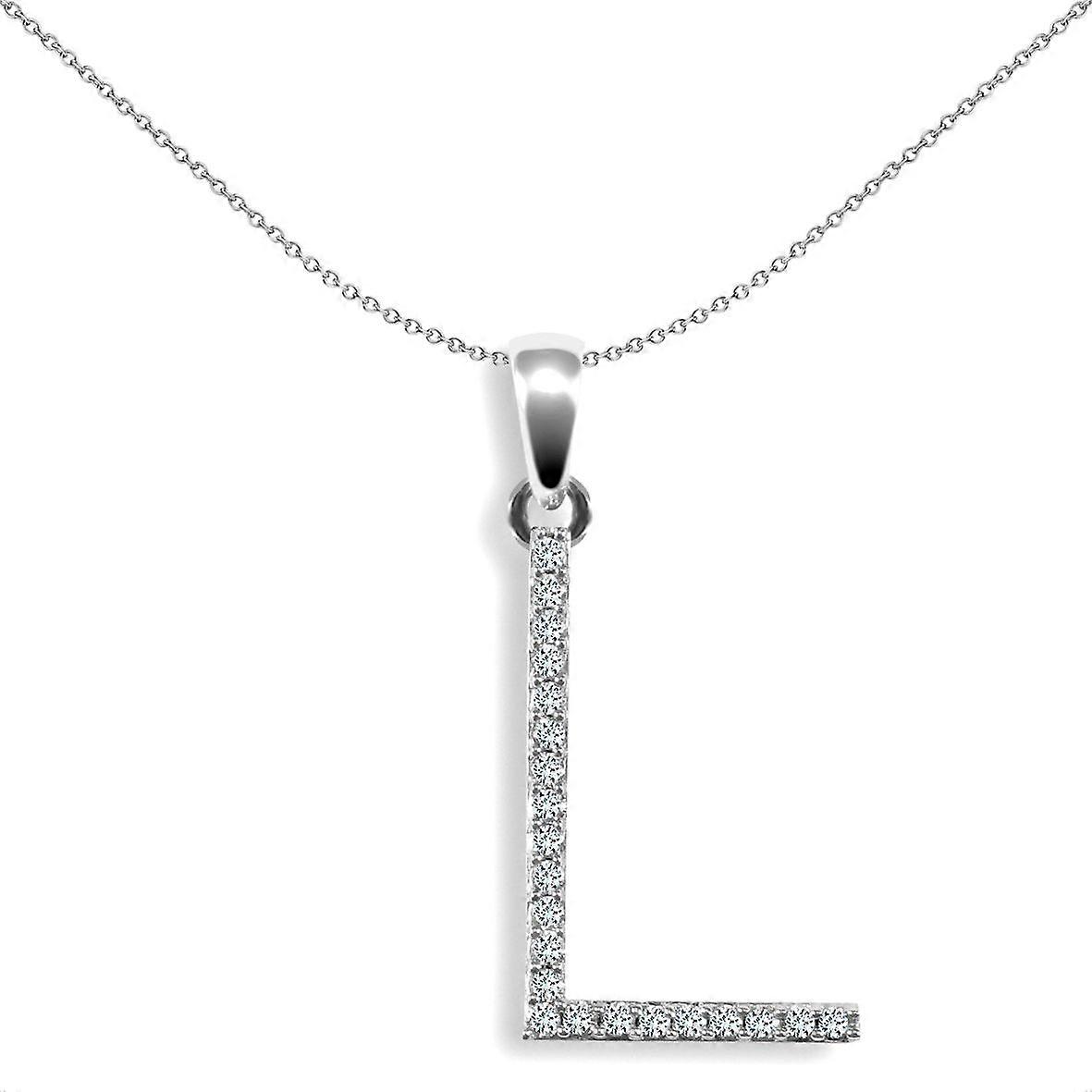 Jewelco London Ladies Solid 9ct White Gold Pave Set Round G SI 0.11ct Diamond Elegant Block Initial ID Charm Pendant