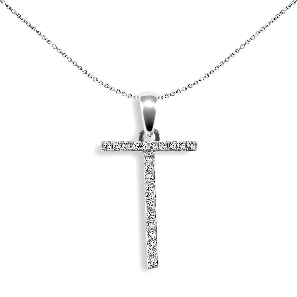 Jewelco London Ladies Solid 9ct White Gold Pave Set Round G SI 0.11ct Diamond Elegant Block Initial ID Charm Pendant