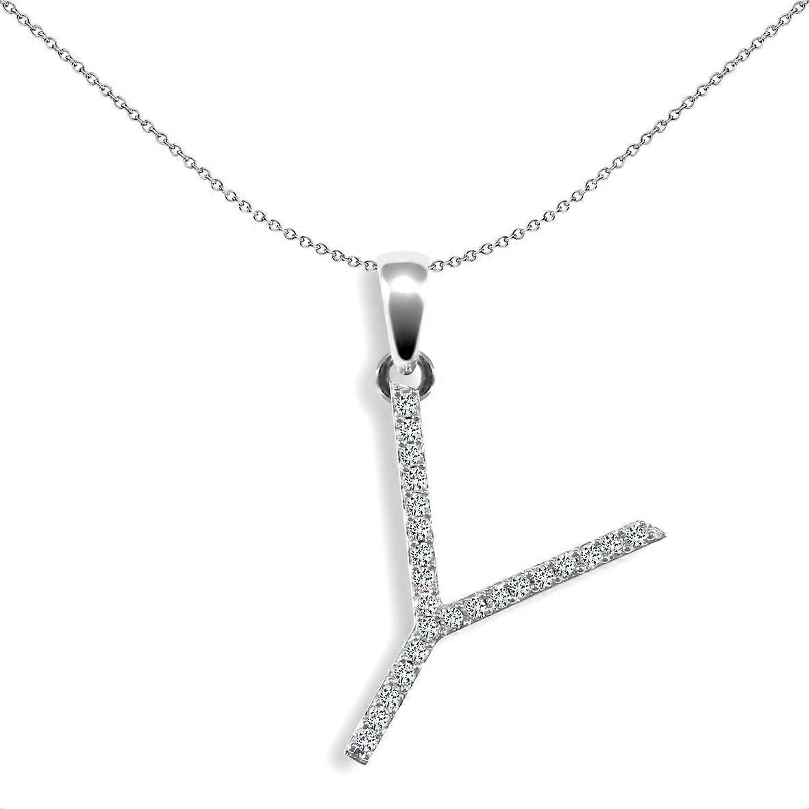 Jewelco London Ladies Solid 9ct White Gold Pave Set Round G SI 0.12ct Diamond Elegant Block Initial ID Charm Pendant