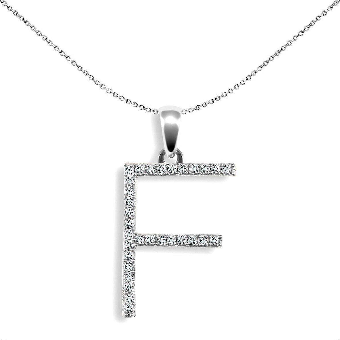 Jewelco London Ladies Solid 9ct White Gold Pave Set Round G SI 0.16ct Diamond Elegant Block Initial ID Charm Pendant