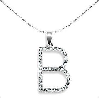 Jewelco London Ladies Solid 9ct White Gold Pave Set Round G SI 0.23ct Diamond Elegant Block Initial ID Charm Pendant