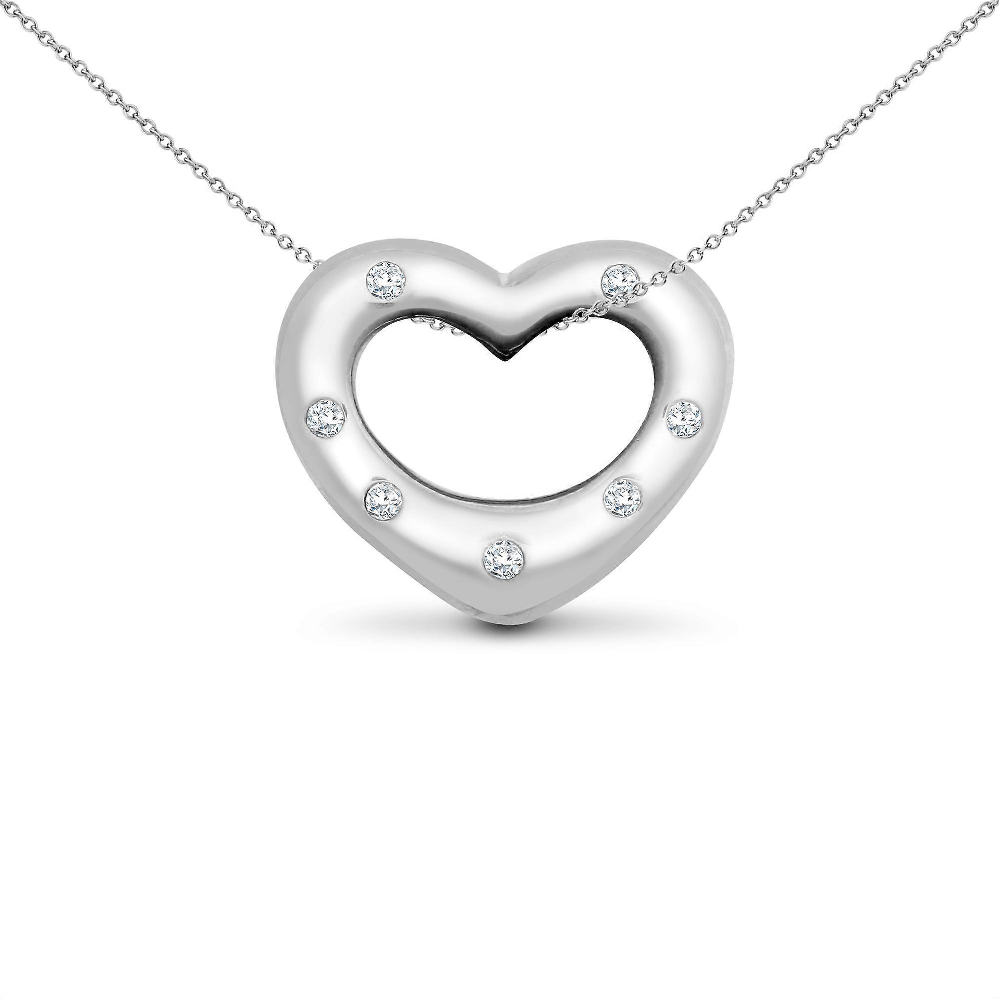 Jewelco London Ladies Solid 9ct White Gold Rub Over Set Round H I1 0.05ct Diamond Love Heart Charm Pendant