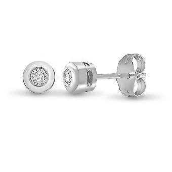 Jewelco London Ladies Solid 9ct White Gold Rub Over Set Round H I1 0.3ct Diamond Solitaire Stud Earrings