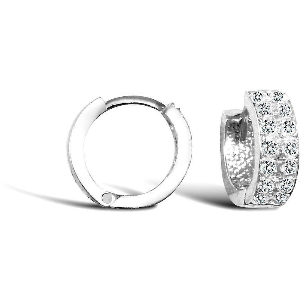 Jewelco London Ladies Solid 9ct White Gold White Round Brilliant Cubic Zirconia 2 Row Eternity 4mm Huggie Hoop Earrings 11mm