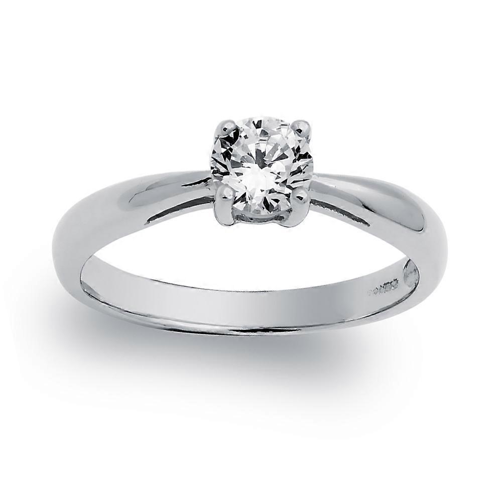Jewelco London Ladies Solid 9ct White Gold White Round Brilliant Cubic Zirconia Solitaire Engagement Ring 5mm 0.50cts