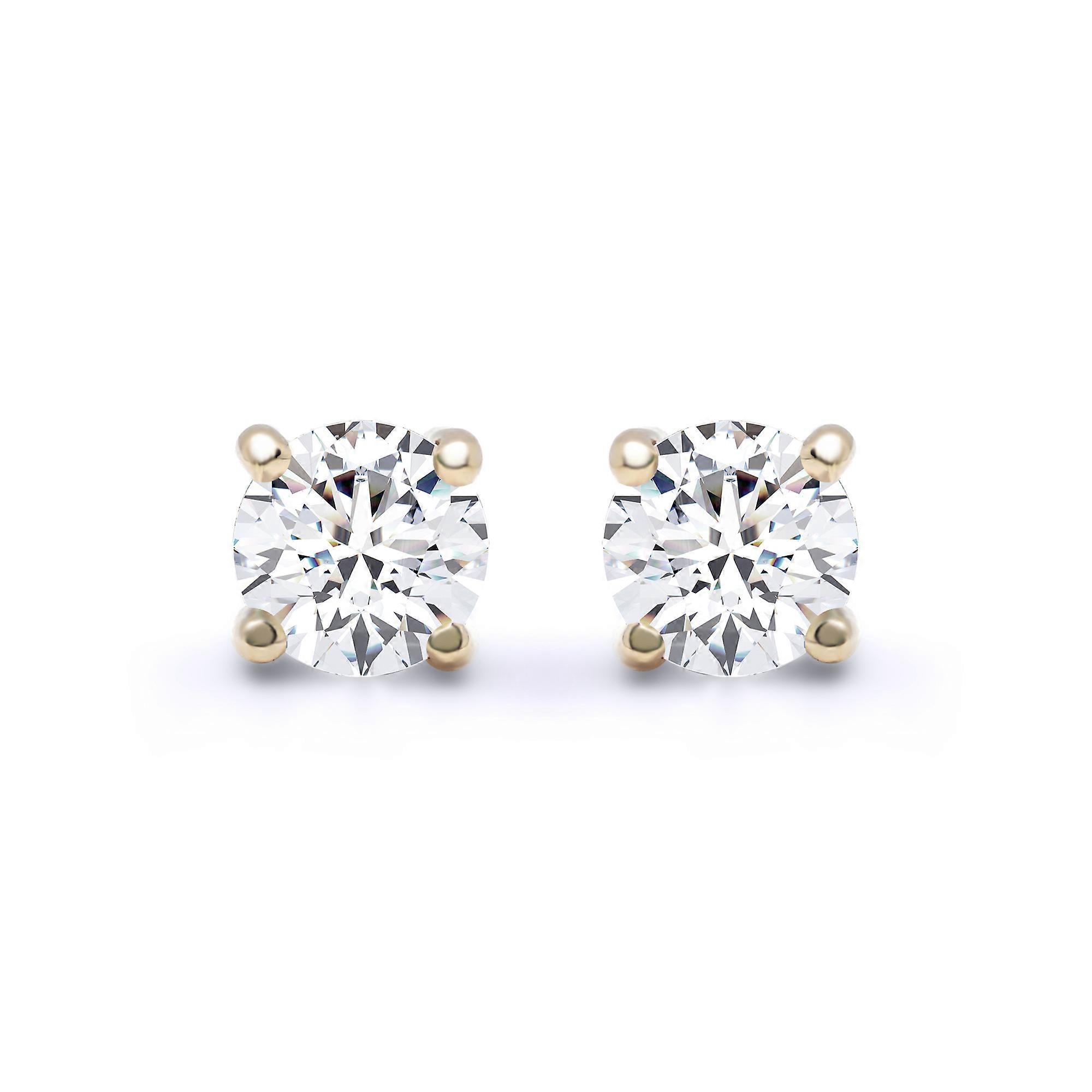 Jewelco London Ladies Solid 9ct Yellow Gold 4 Claw Set Round H I1 1.00ct Diamond Solitaire Stud Earrings