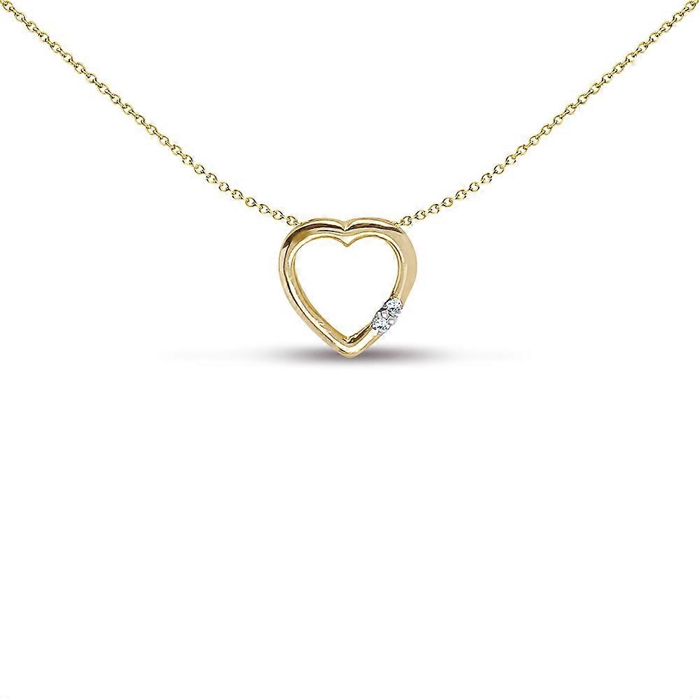 Jewelco London Ladies Solid 9ct Yellow Gold Bar Set Round H I1 0.01ct Diamond Tiny Dainty Love Heart Charm Pendant
