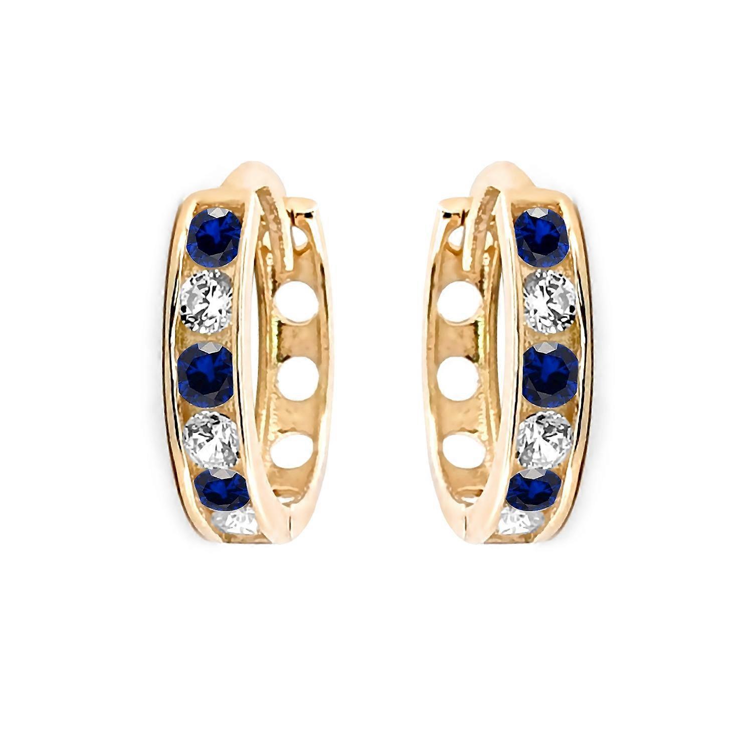 Jewelco London Ladies Solid 9ct Yellow Gold Blue Round Brilliant Cubic Zirconia Eternity 2mm Huggie Hoop Earrings 11mm