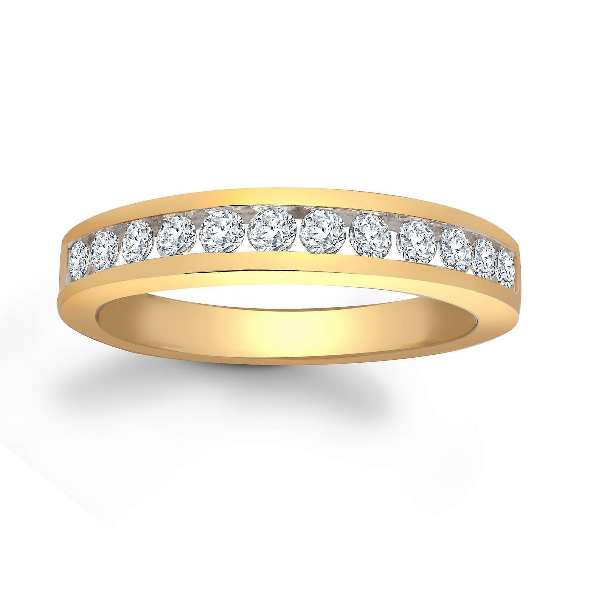 Jewelco London Ladies Solid 9ct Yellow Gold Channel Set Round H I1 0.5ct Diamond Dainty Band Eternity Ring 4mm