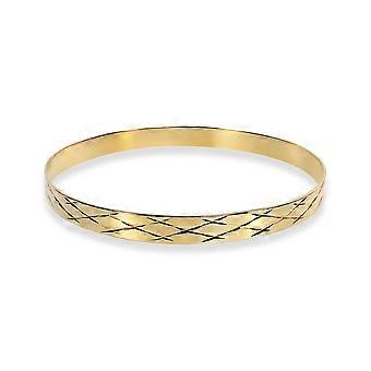 Jewelco London Ladies Solid 9ct Yellow Gold Diamond Cut Flat Band Slave 6mm Bangle Bracelet