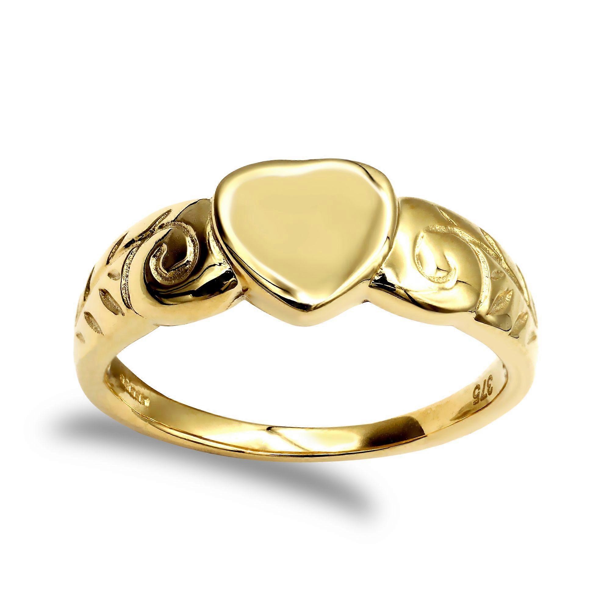 Jewelco London Ladies Solid 9ct Yellow Gold Floral Scroll Heart Signet Ring