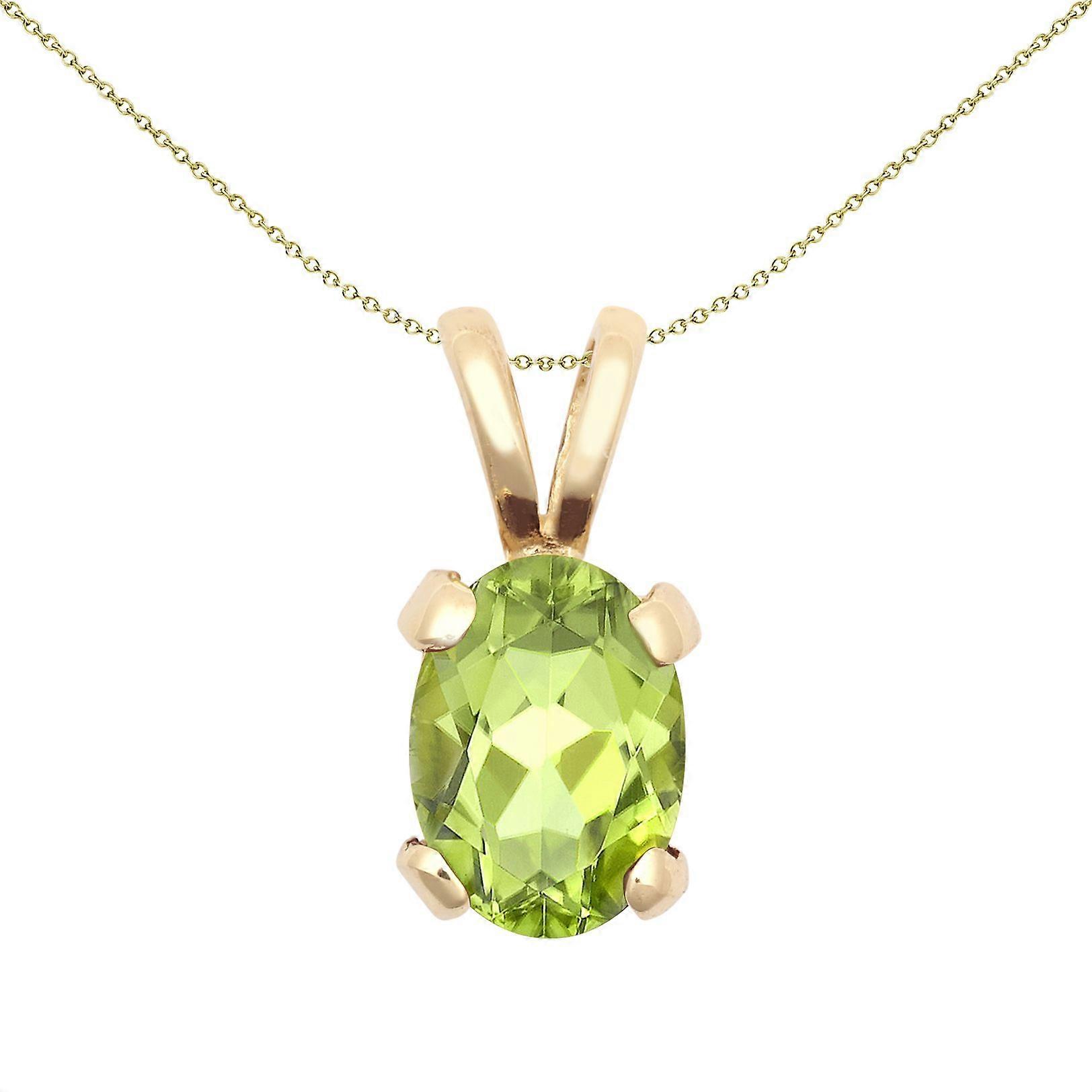 Jewelco London Ladies Solid 9ct Yellow Gold Light Green Oval Peridot 4 Claw Solitaire Charm Pendant, 7x5mm