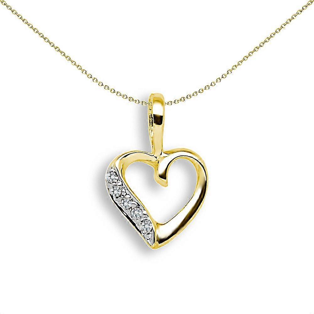 Jewelco London Ladies Solid 9ct Yellow Gold Pave Set Round I I3 0.025ct Diamond Dainty Love Heart Charm Pendant