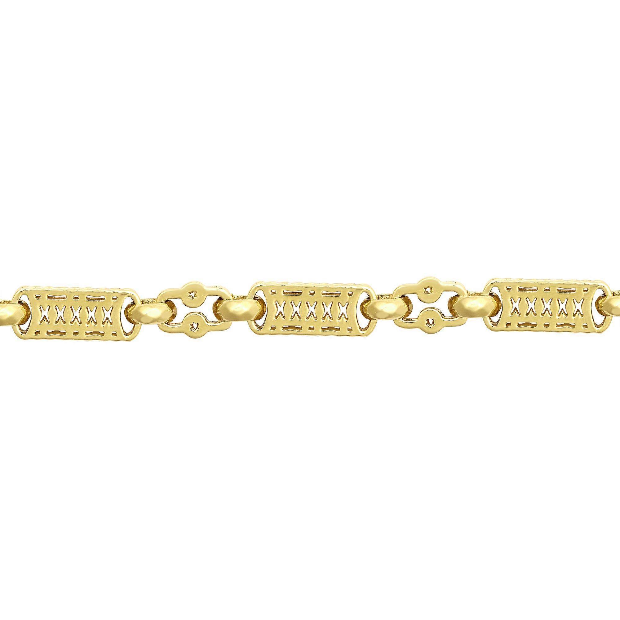 Jewelco London Ladies Solid 9ct Yellow Gold Rolling Stars & Bars 5mm Chain Link Bracelet, 7.5 inch 19cm