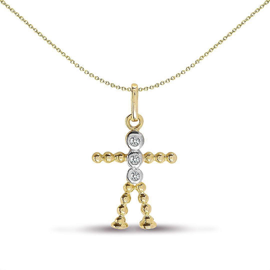 Jewelco London Ladies Solid 9ct Yellow Gold Rub Over Set Round H I1 0.05ct Diamond Corndolly Boy Charm Pendant