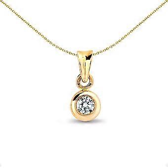 Jewelco London Ladies Solid 9ct Yellow Gold Rub Over Set Round H I1 0.2ct Diamond Donut Ring Solitaire Pendant
