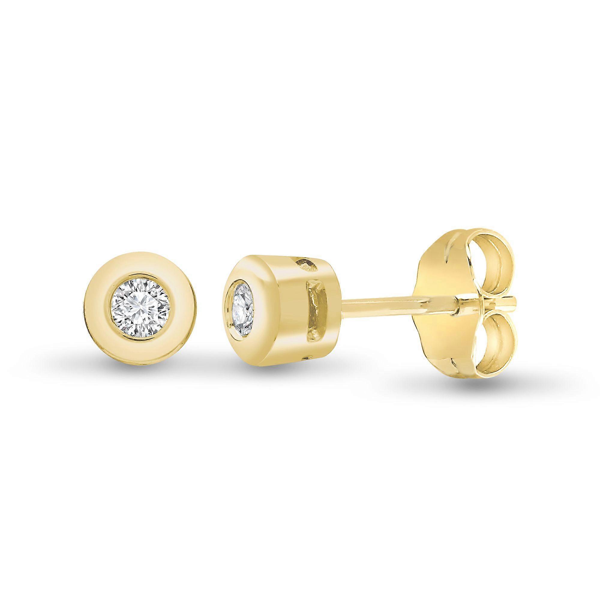 Jewelco London Ladies Solid 9ct Yellow Gold Rub Over Set Round H I1 0.2ct Diamond Solitaire Stud Earrings