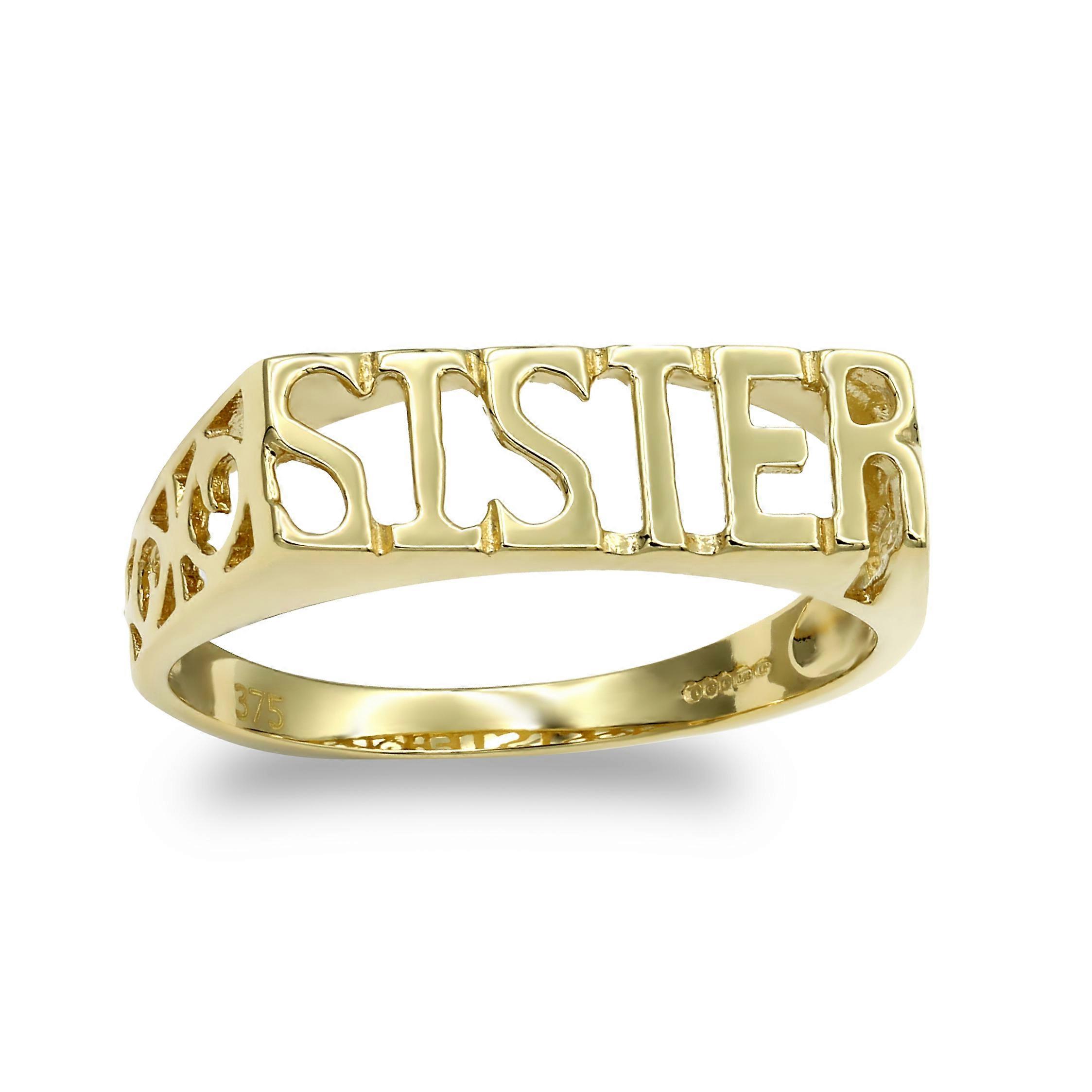 Jewelco London Ladies Solid 9ct Yellow Gold Scroll Sides SISTER Ring